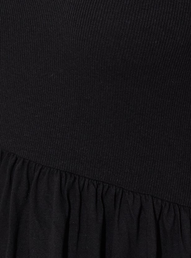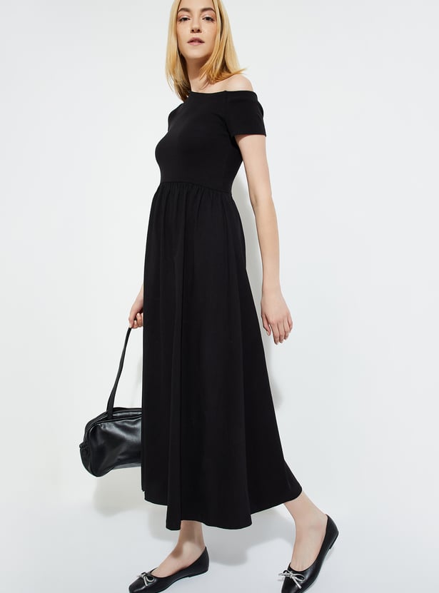 URB_N Women Ribbed One-shoulder Midi Dress