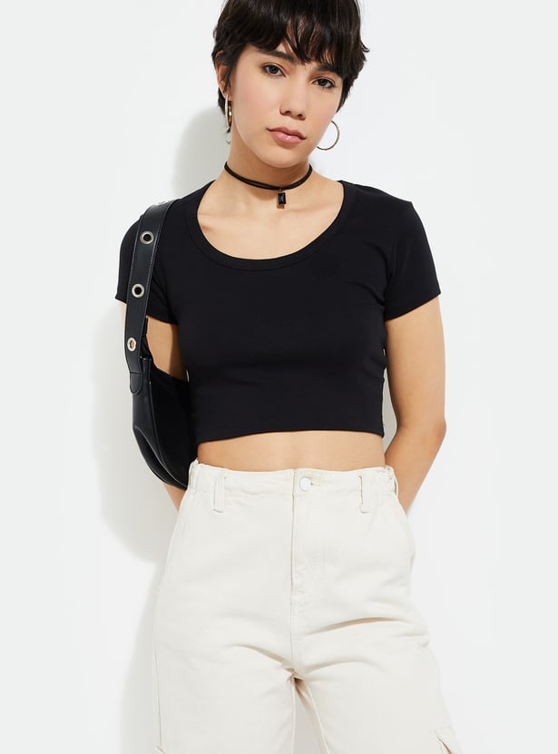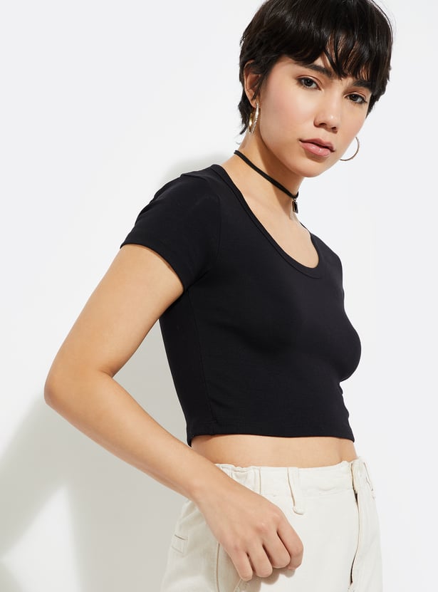 URB_N Women Solid Crop T-shirt
