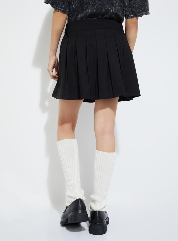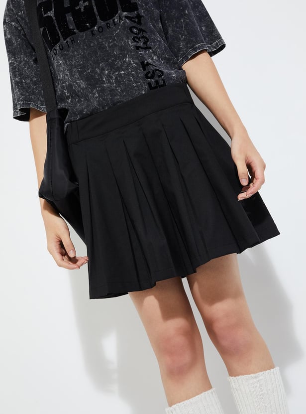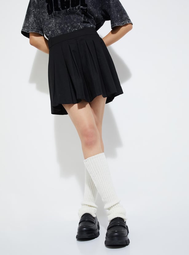 URB_N Women Solid Pleated Mini Skirt