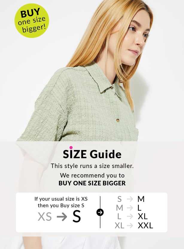 Elevate your casual style with this boxy fit textured shirt featuring a spread collar and half sleeves. The textured fabric adds a modern edge, while the relaxed silhouette ensures all-day comfort. Perfect for laid-back weekends or effortless streetwear looks.