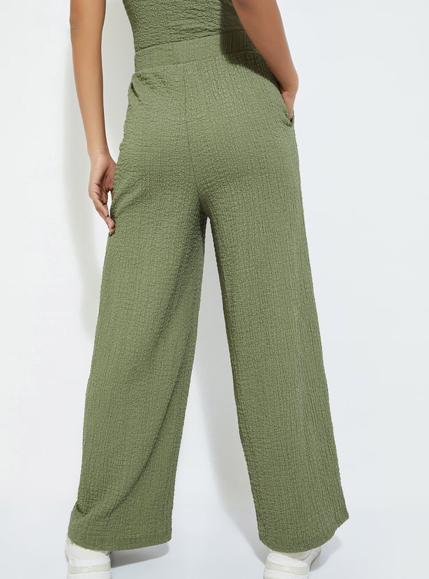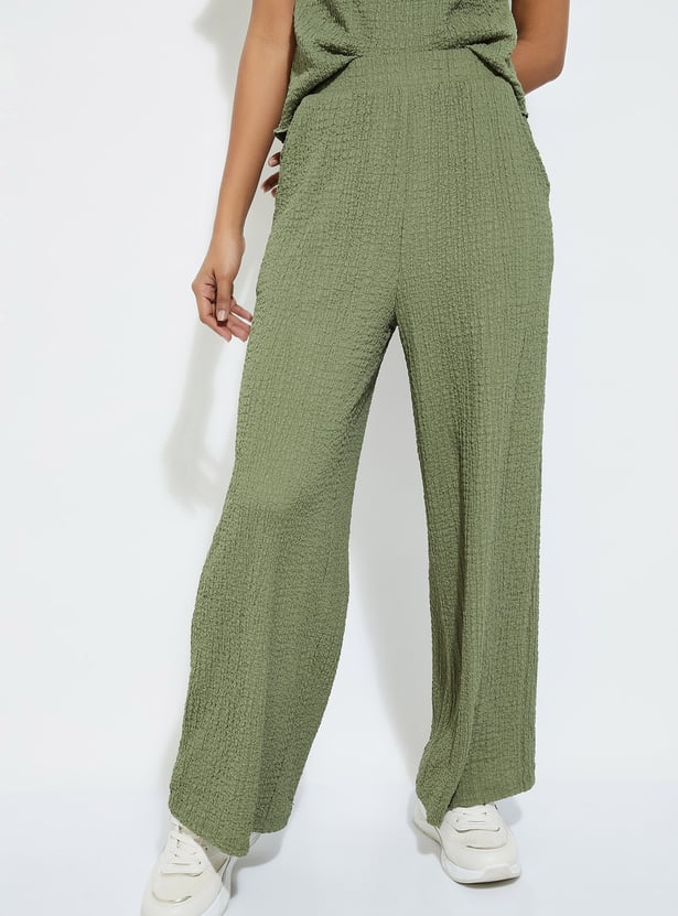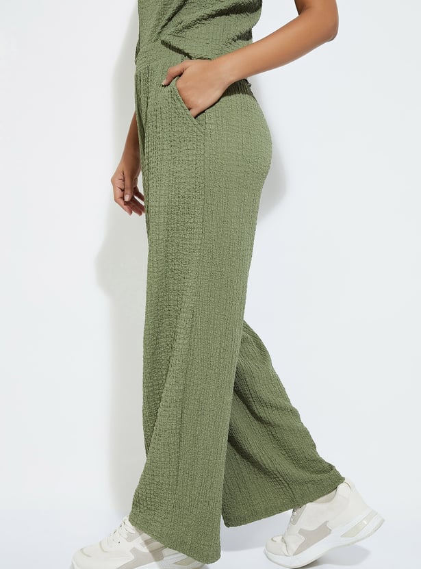URB_N Women Textured Wide Leg Trousers