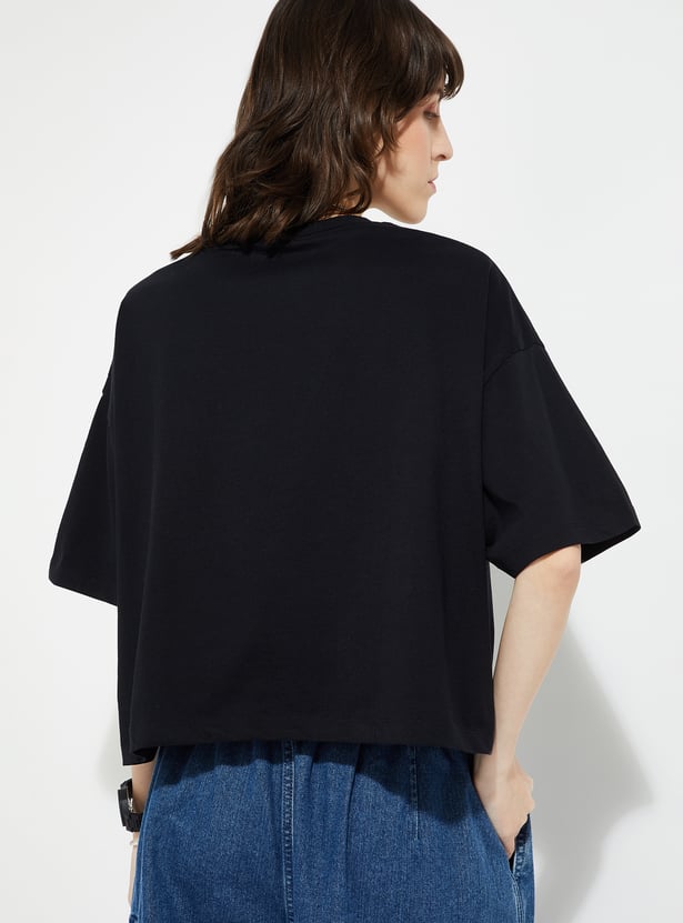 Show off your spirited side with this Tom & Jerry print T-shirt, featuring a playful graphic of the iconic duo and a classic round neck with breezy half sleeves. Designed for a modern, boxy fit, it perfectly combines a structured look with all-day comfort and fun, casual style.