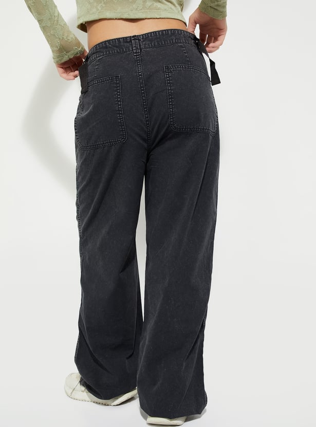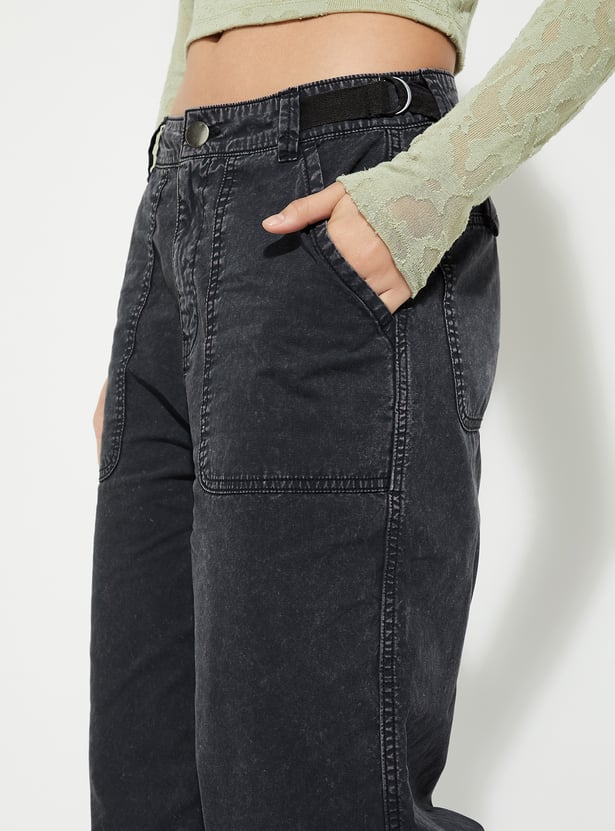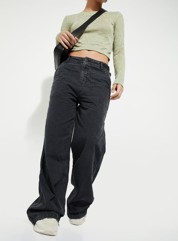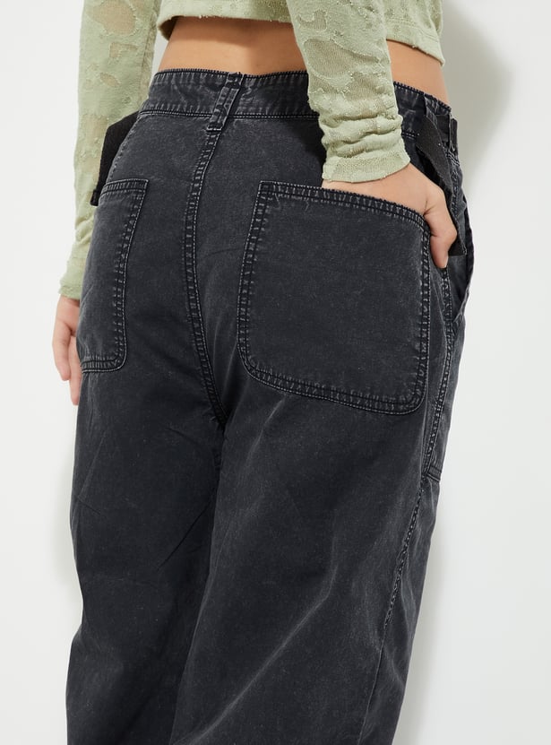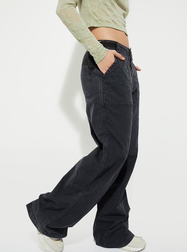 Combine laid-back style with utilitarian functionality in this pair of jeans. It features a belt loop waist with adjustable sides, allowing you to customise the fit for maximum comfort. The multiple patch pockets add a practical touch. With their wide-leg design and washed finish, this pair is sure to become your go-to style.