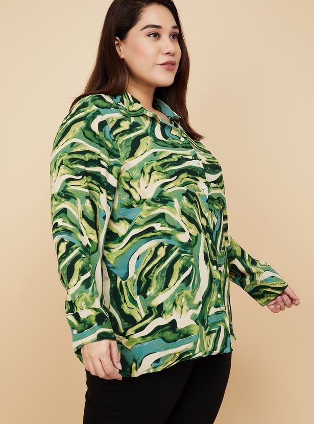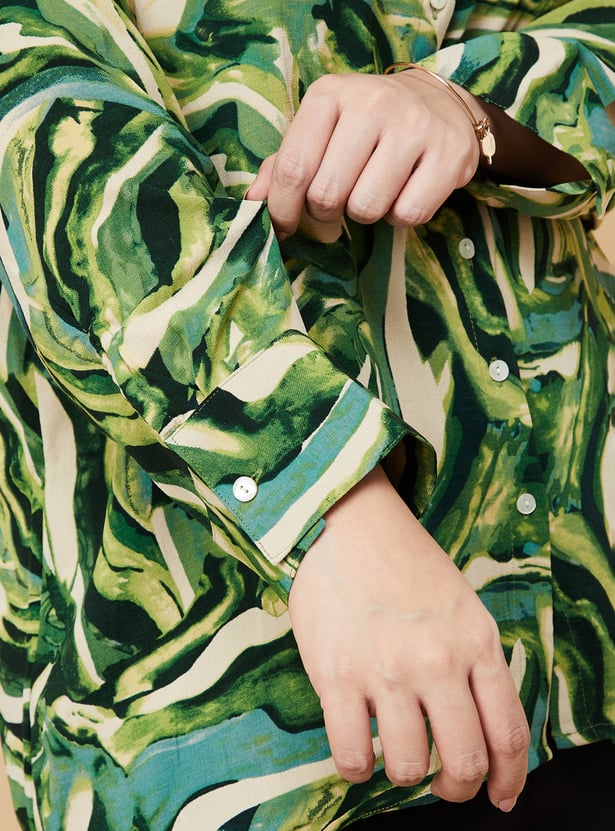 Infuse both comfort and style into your wardrobe with this timeless abstract printed casual shirt. Featuring full sleeves, a curved hemline, and a spread collar with a button placket, it's a versatile addition to your collection.