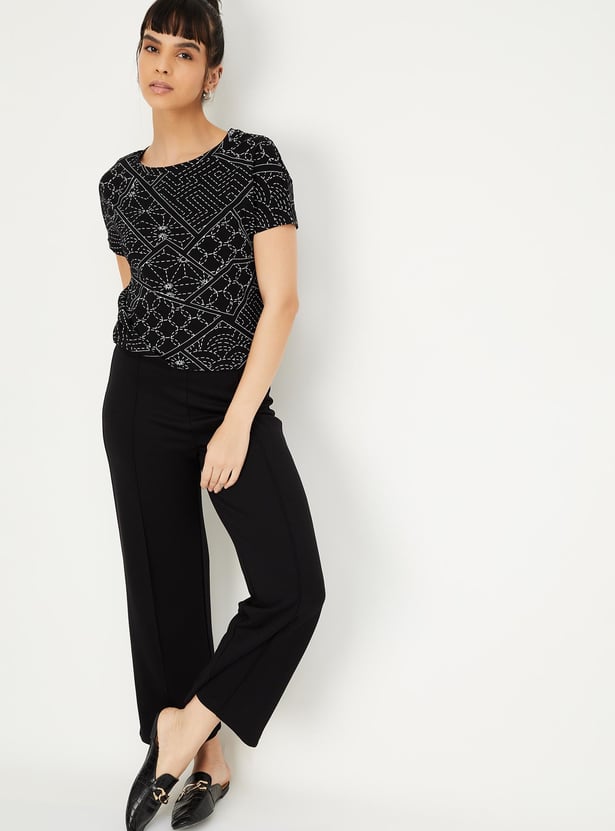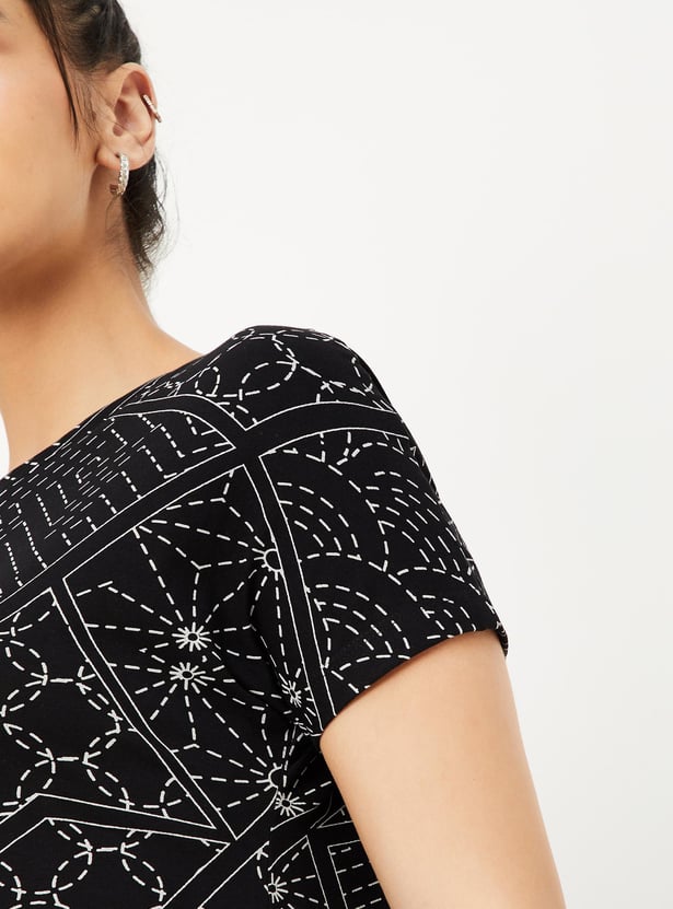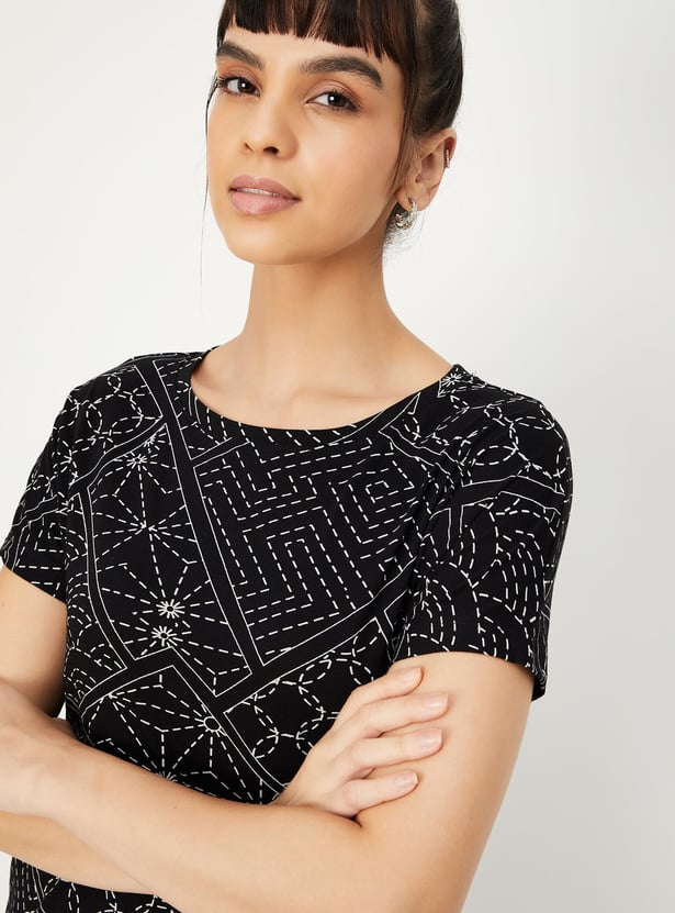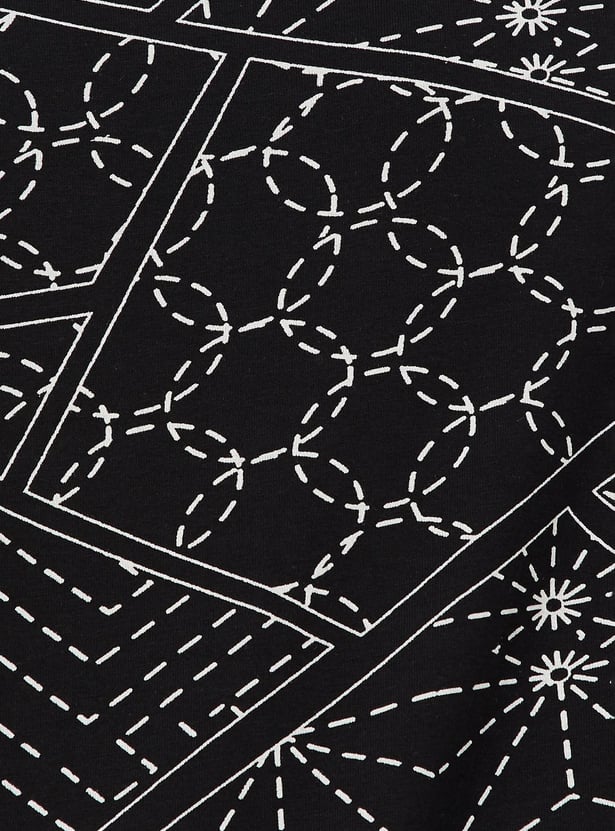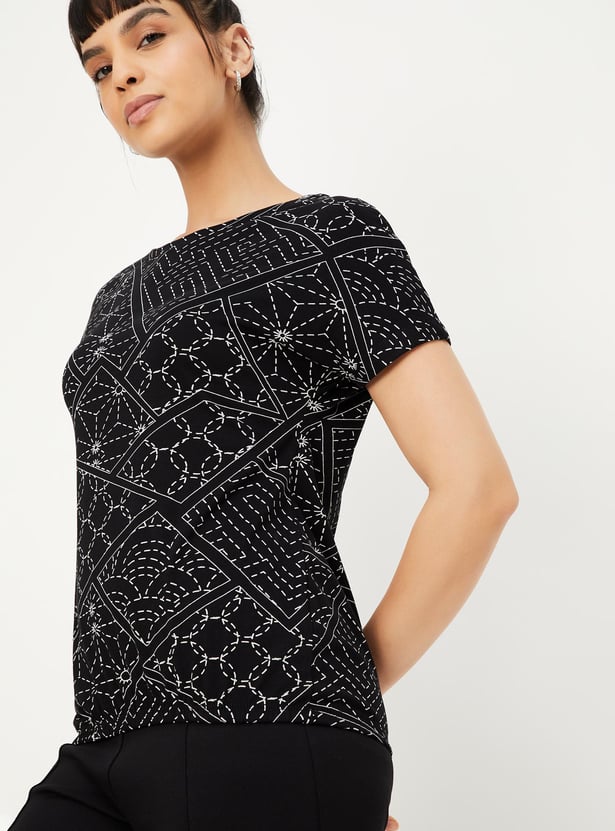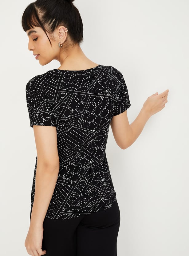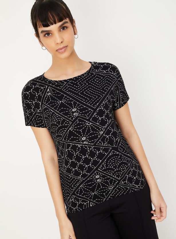Update your casual wardrobe with this stylish T-shirt featuring abstract prints. With its round neck and short sleeves, it's perfect for a laid-back yet trendy look.