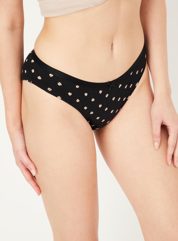 Stay comfortable with this pack of bikini panties that come with an elasticated waistline. The pack features two printed panties and one solid panties.