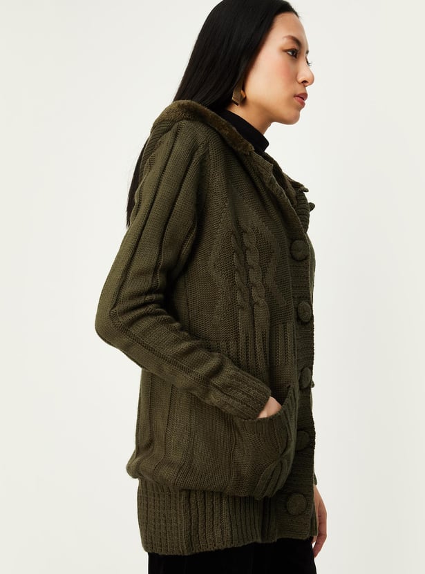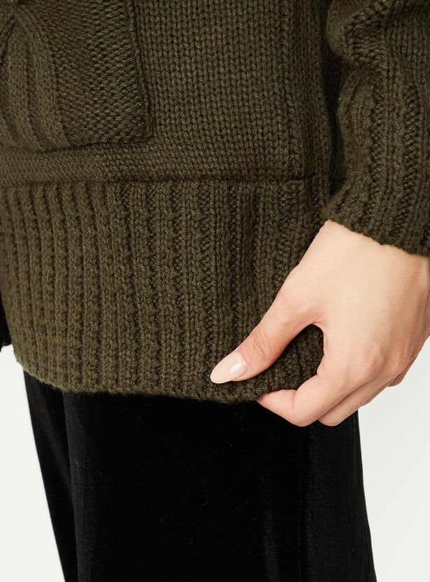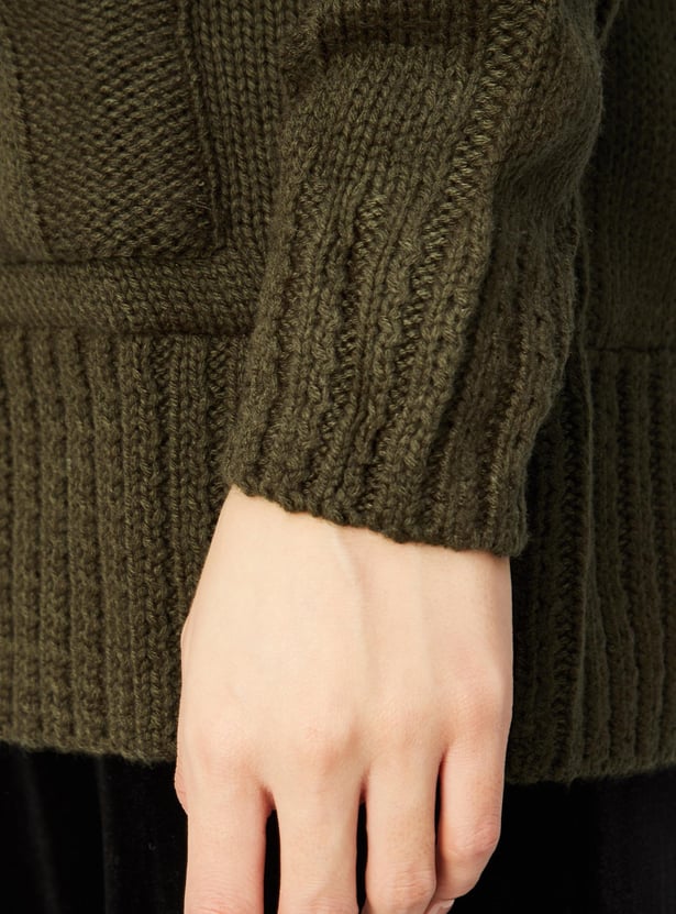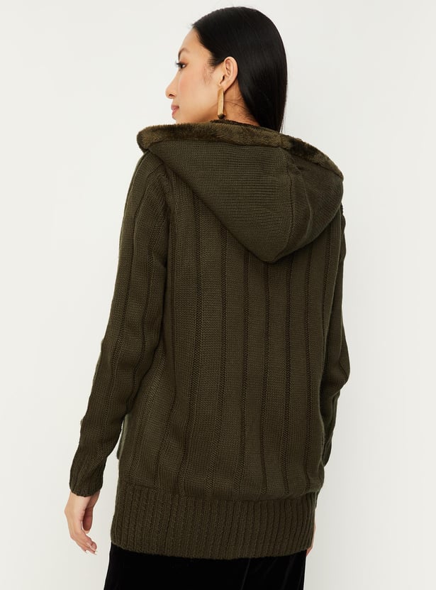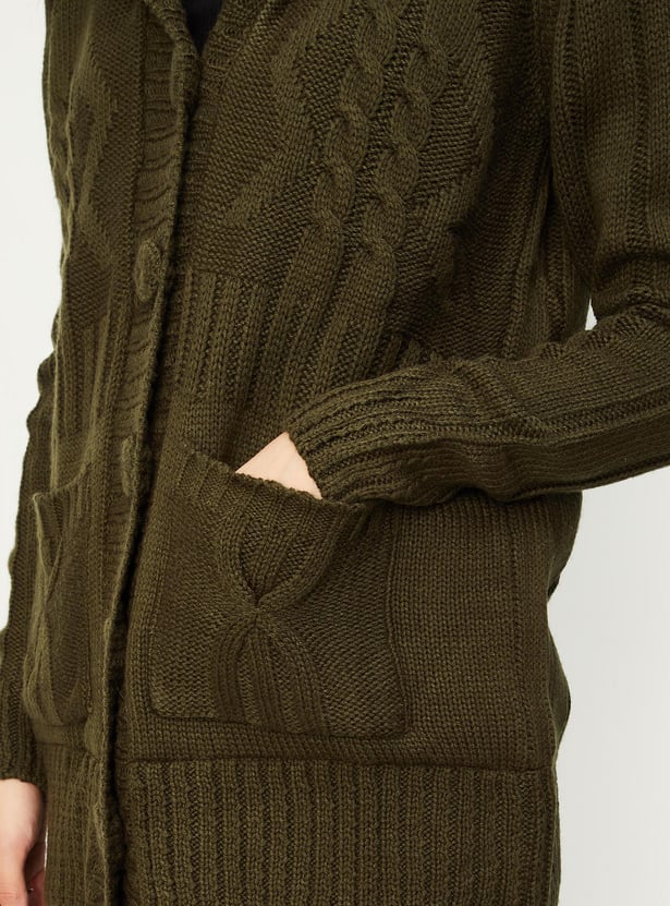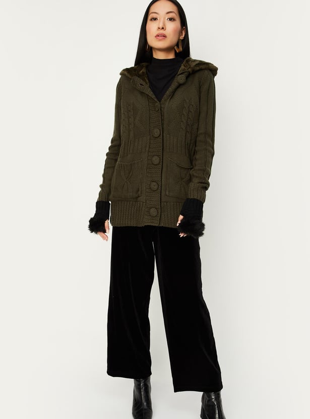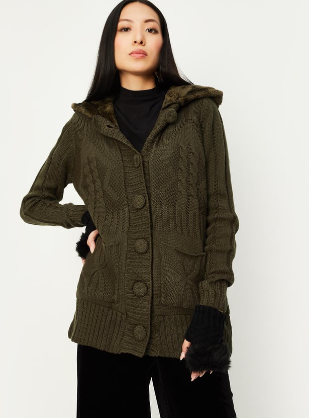 Women Cable Knit Hooded Cardigan