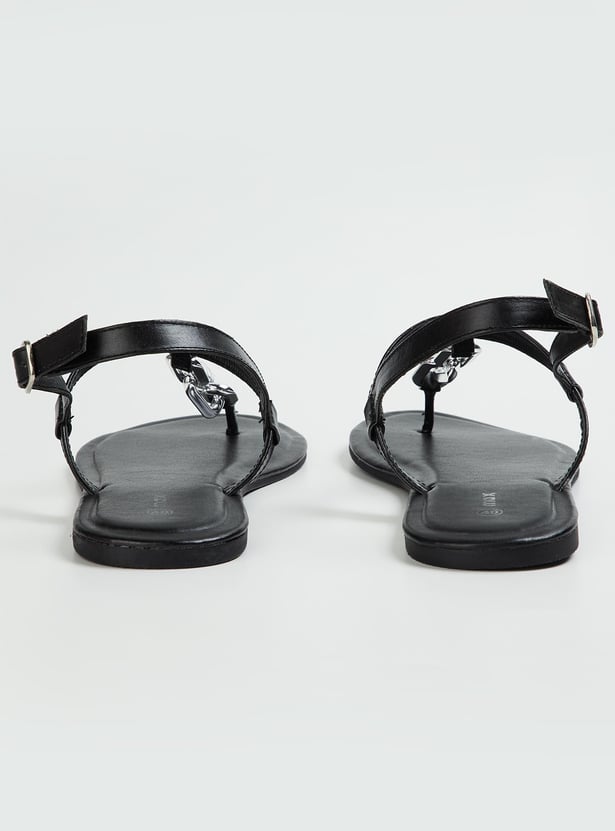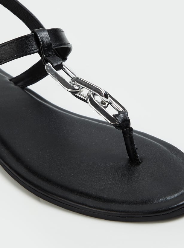 Women Chain Detailed T-Strap Flat Sandals