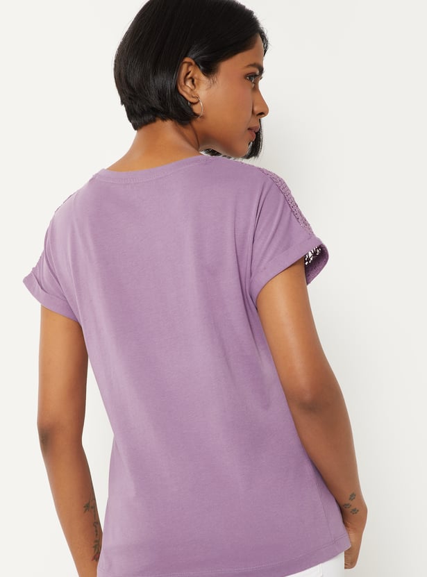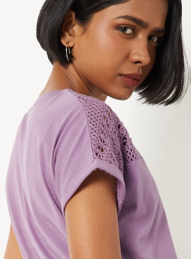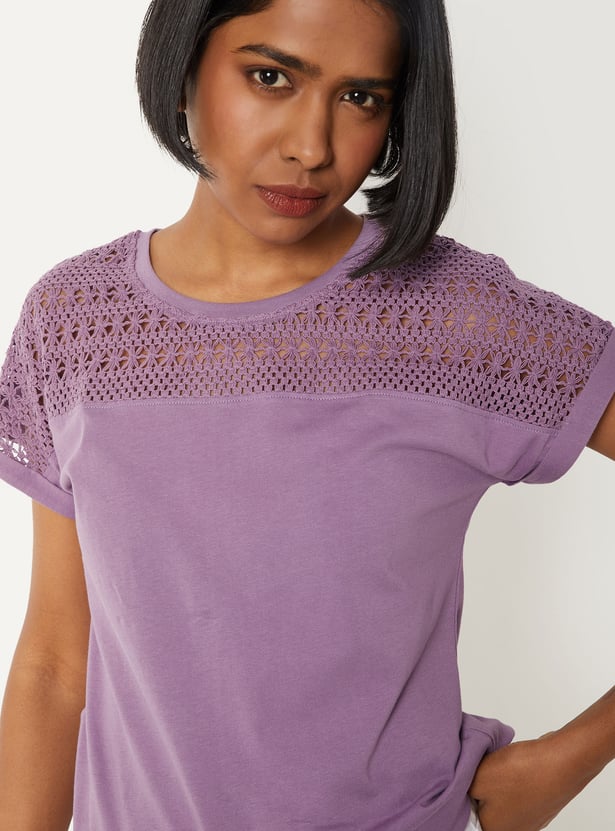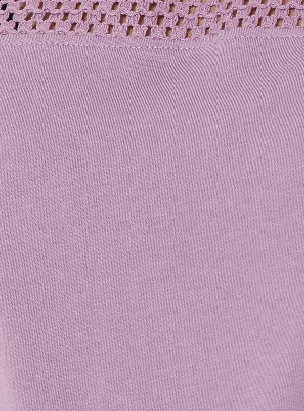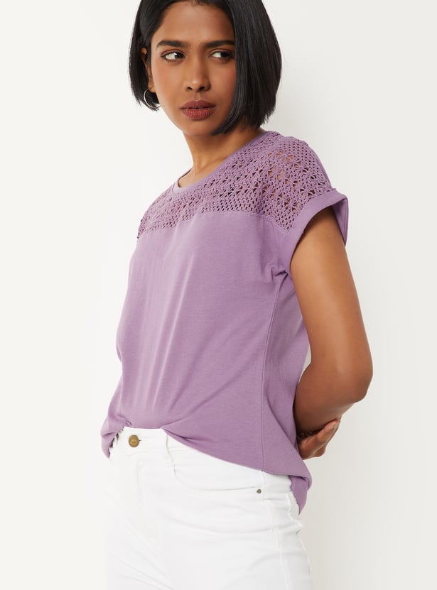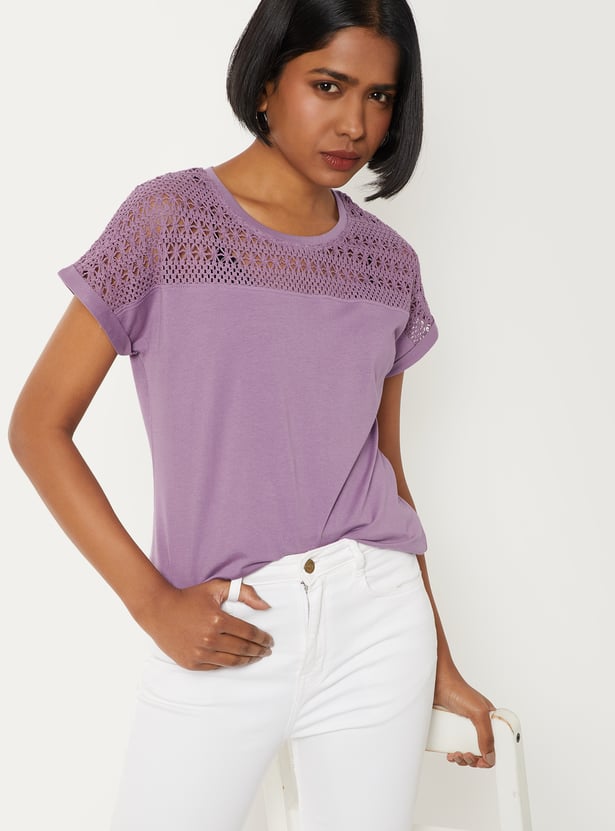 Refresh your everyday wardrobe with this crochet knit top, designed for both comfort and versatility. Featuring a classic round neck and half sleeves, it offers a clean, minimal look that’s easy to style for any occasion.
