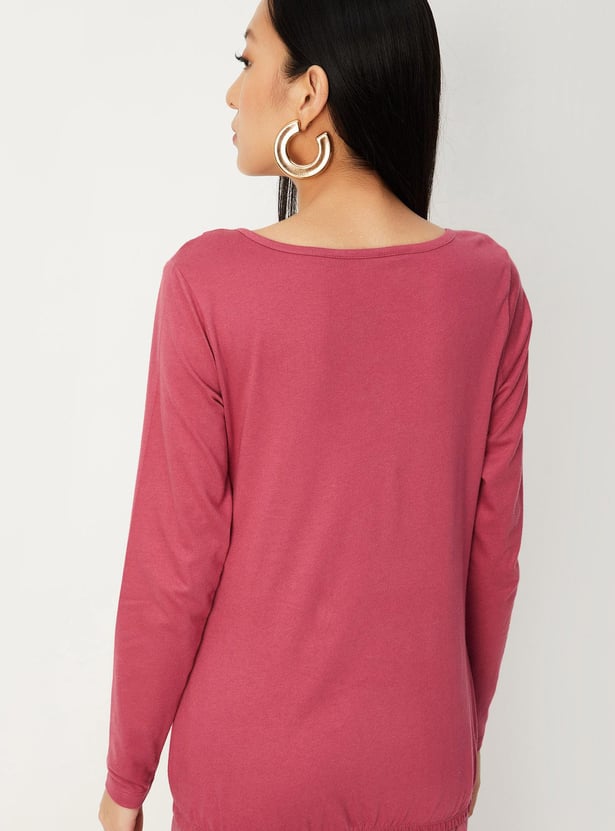 Give your everyday style an upgrade with this top. It is highlighted with a crocheted yoke. This top is styled with full sleeves and a tie-up neckline. For a laidback look, style this top with a pair of wide-leg trousers and ballerinas.