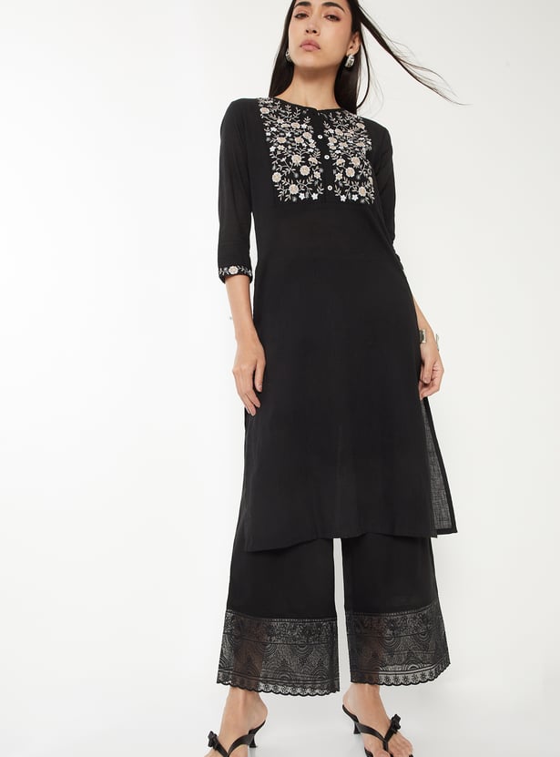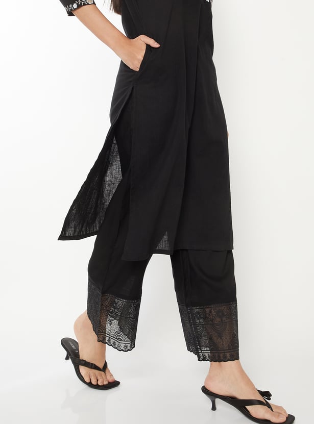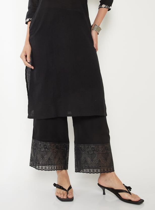 Women Embroidered Hem Palazzos