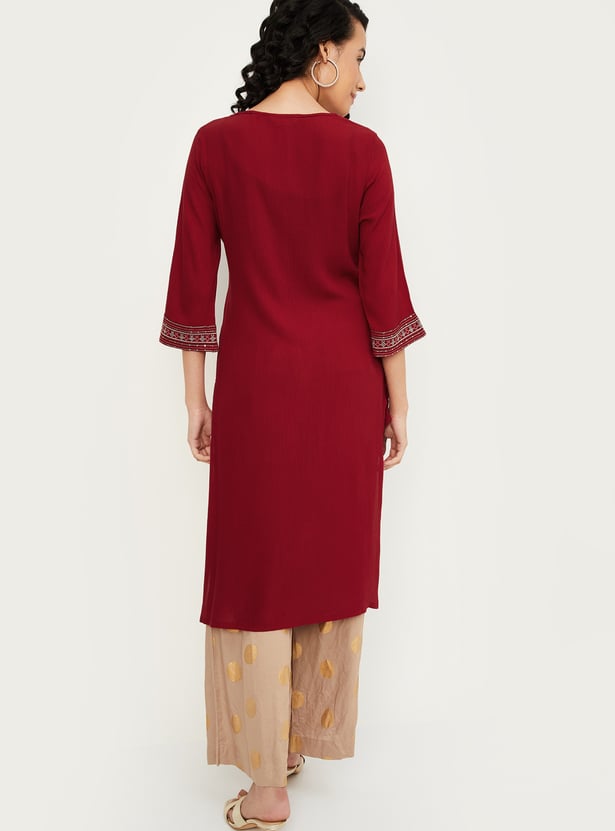 Women Embroidered Straight Kurta