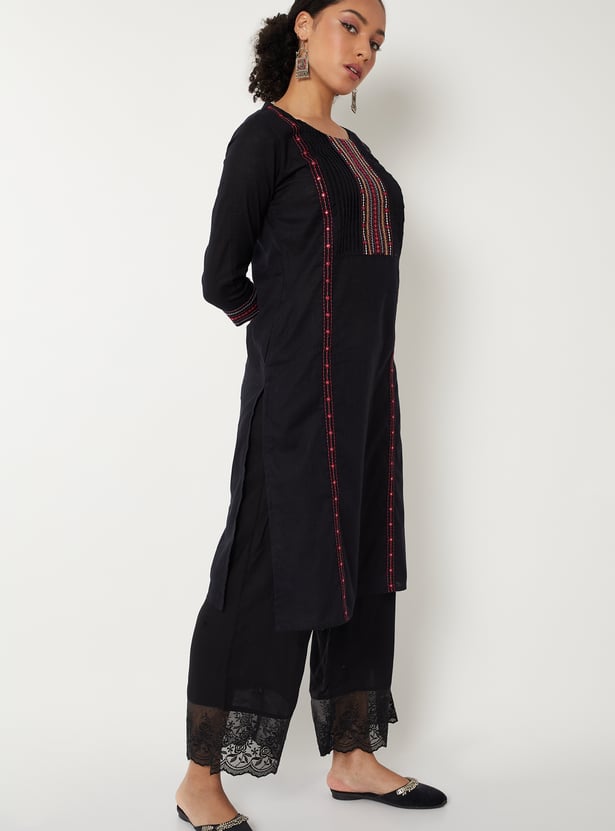 Women Embroidered Straight Kurta