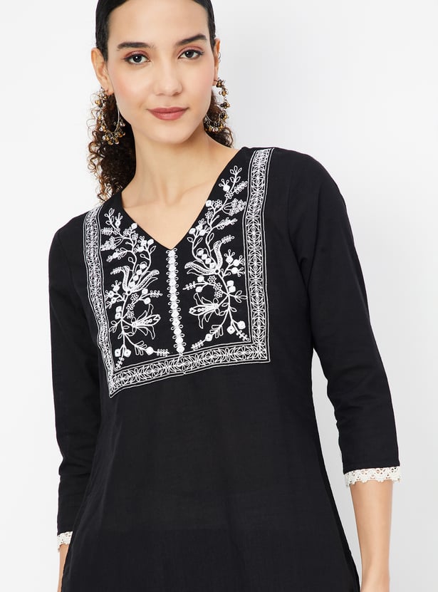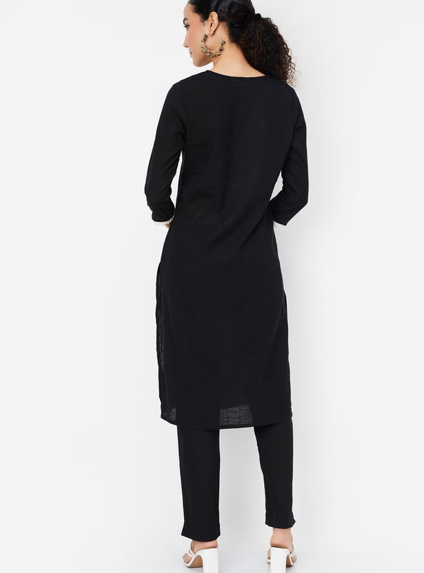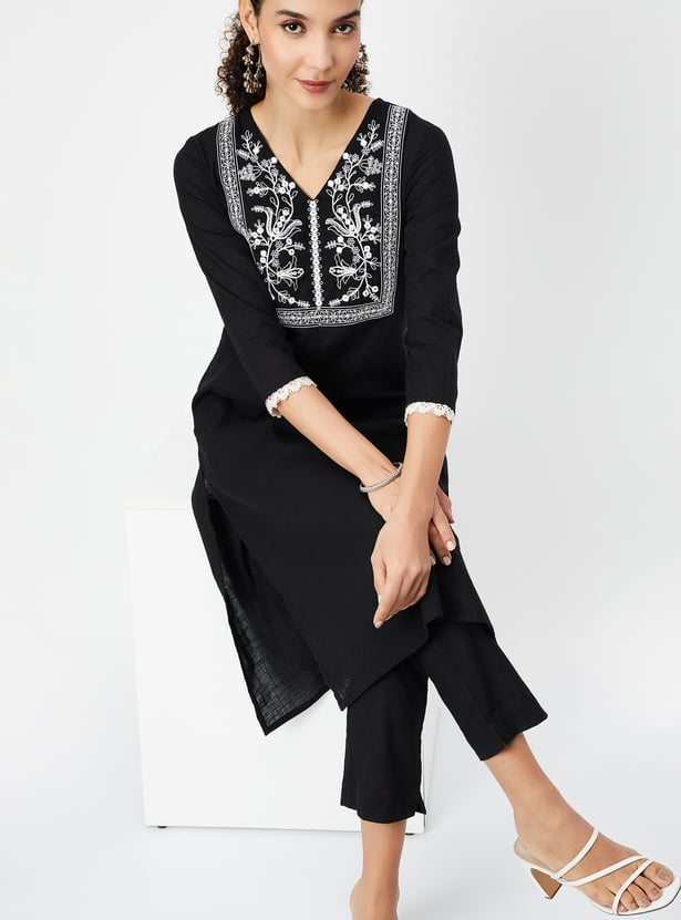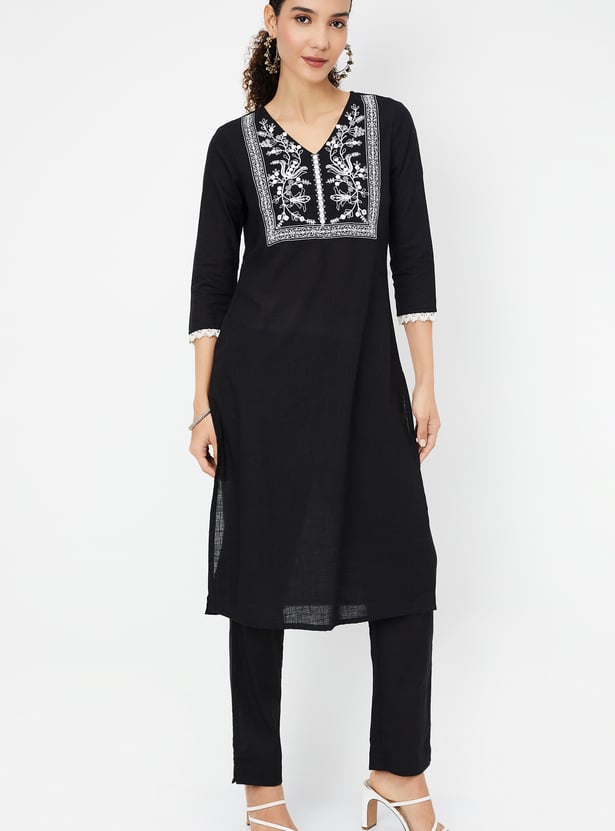 Women Embroidered Straight Kurta Set