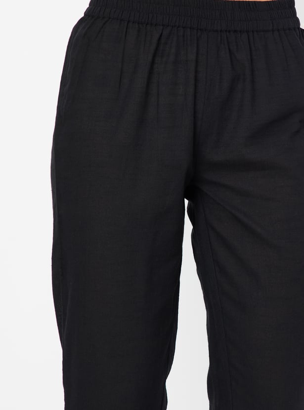 Elevate your casual style with this elegant kurta set, showcasing an intricate embroidered yoke for a touch of grace. The kurta features a V-neck, three-quarter sleeves, and side slits, offering a blend of traditional charm and modern design. Paired with solid straight pants featuring an elasticated waistband, this set ensures both comfort and sophistication, making it perfect for any occasion.