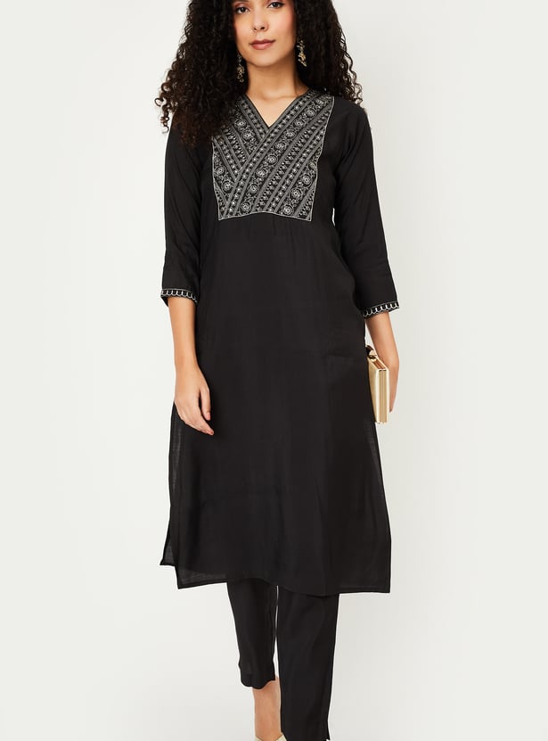 Women Embroidered Straight Kurta Set