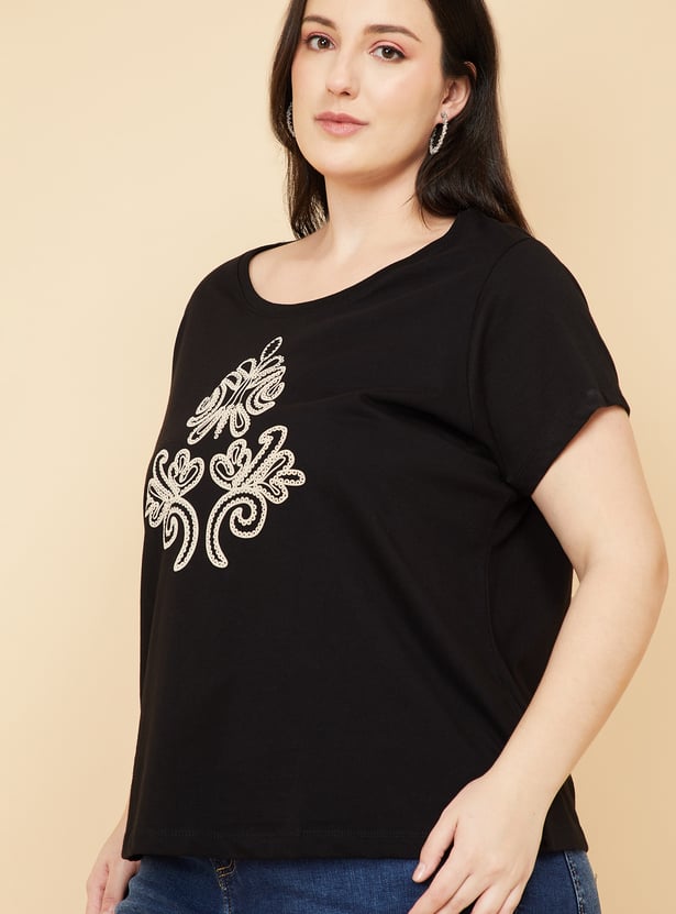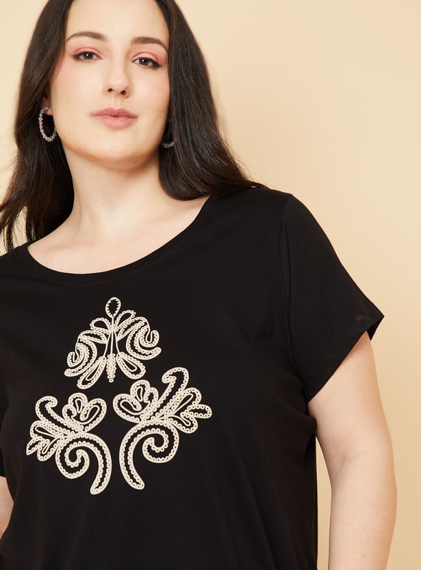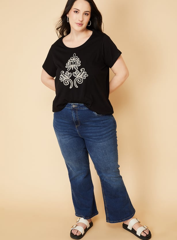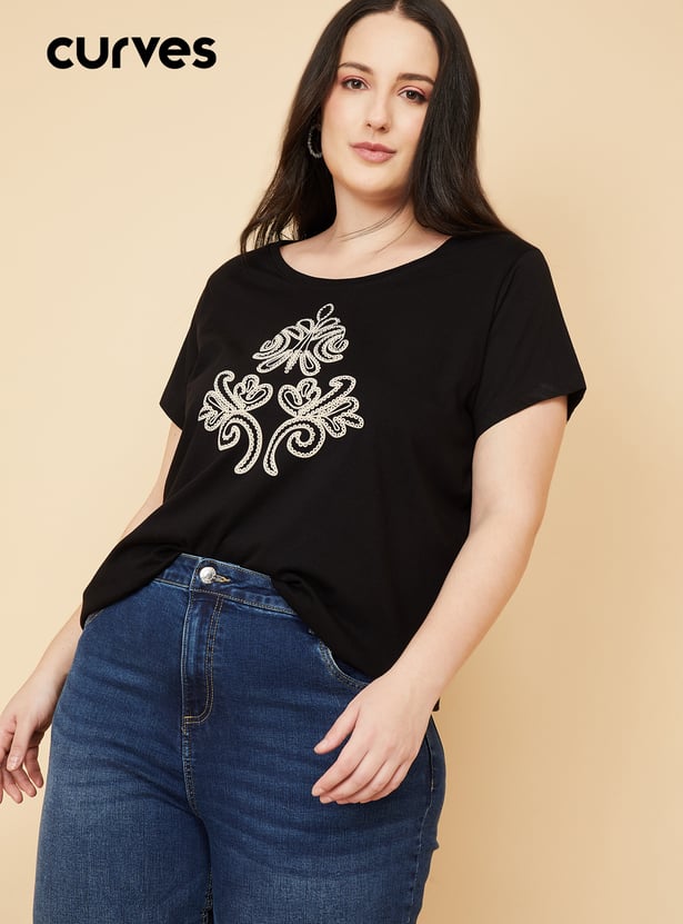 Keep it casual and versatile with this embroidered t-shirt, designed for everyday wear. Featuring a round neck and half sleeves, it offers a comfortable fit with stylish prints that add a playful touch to your look. Model Size :