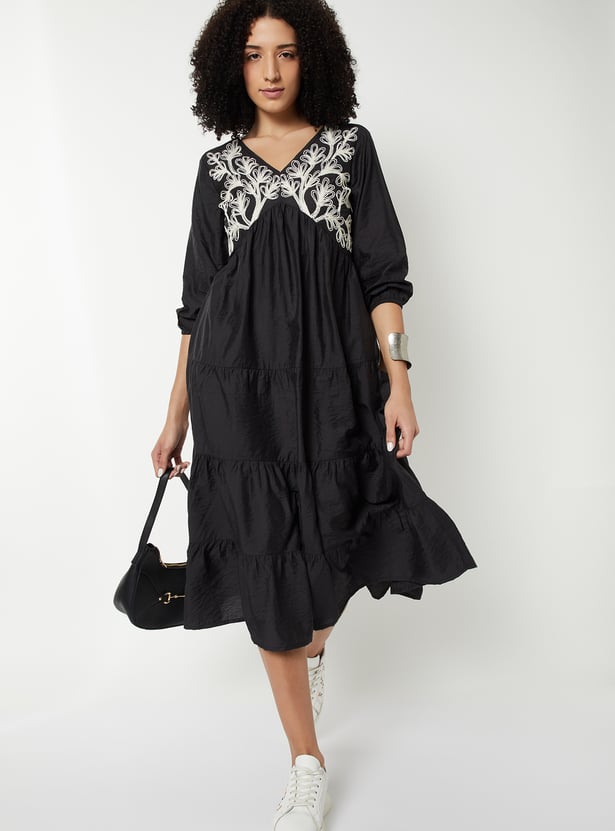 Women Embroidered Tiered Dress