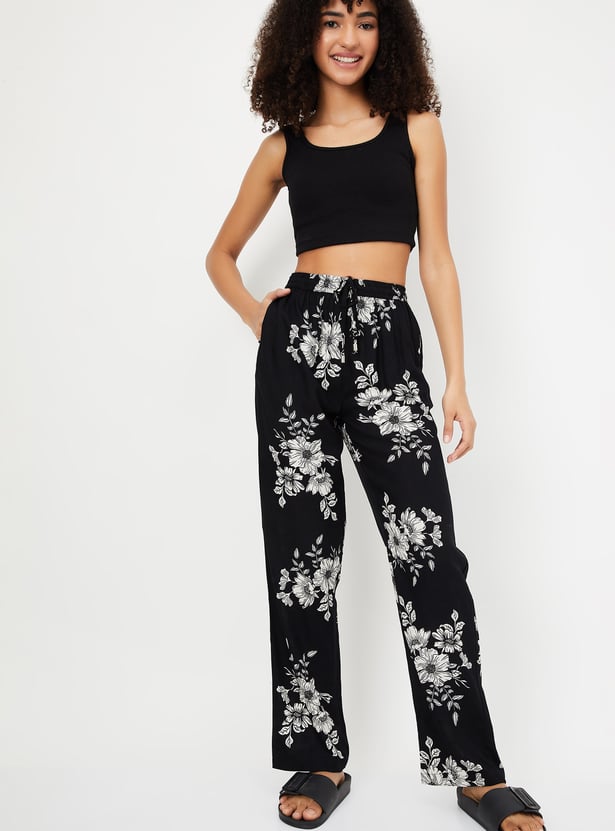 Indulge in all-day comfort with these floral printed pyjamas! Designed with a secure elasticated waist, drawstring closure, and a full-length design, these pyjamas offer a cosy yet stylish fit. The charming floral print adds a playful touch, making them perfect for lounging in style. Model Size :