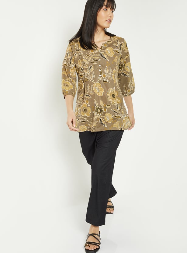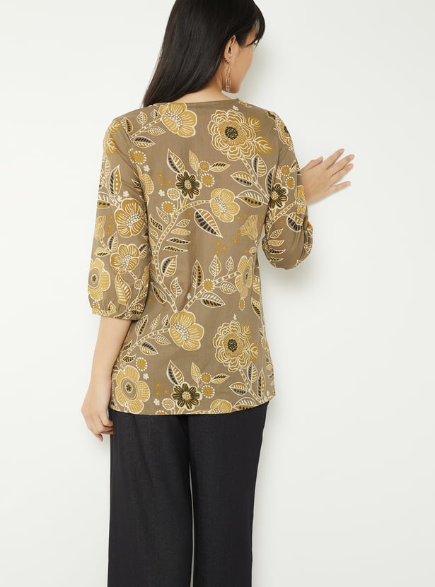 Add a fresh touch to your everyday wardrobe with this floral print kurti, designed with a flattering notched neckline, side slits, and elegant 3/4th sleeves. Crafted for a comfortable fit, it offers an easy silhouette that’s perfect for all-day wear.