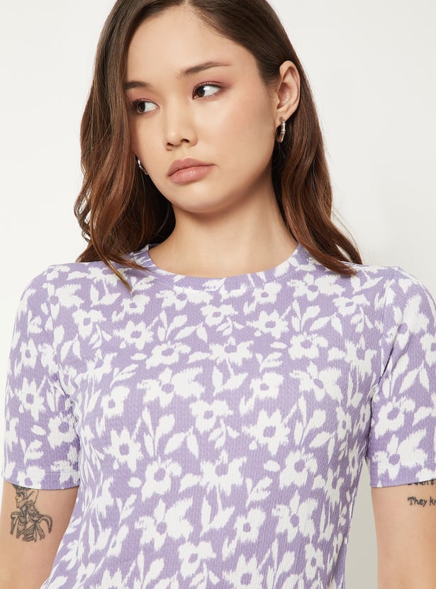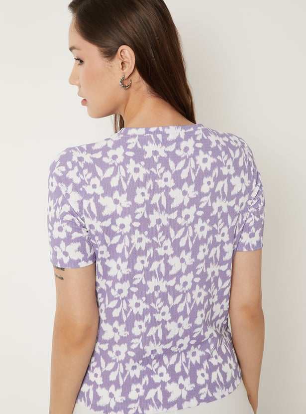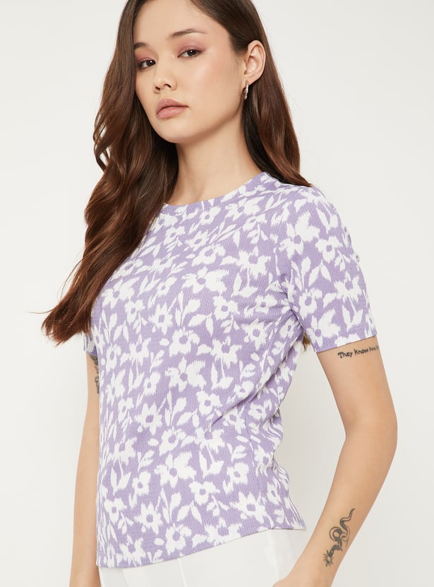 Refresh her everyday wardrobe with this floral print T-shirt featuring a classic round neckline and comfy half sleeves. Model Size :