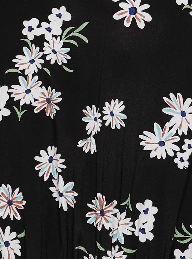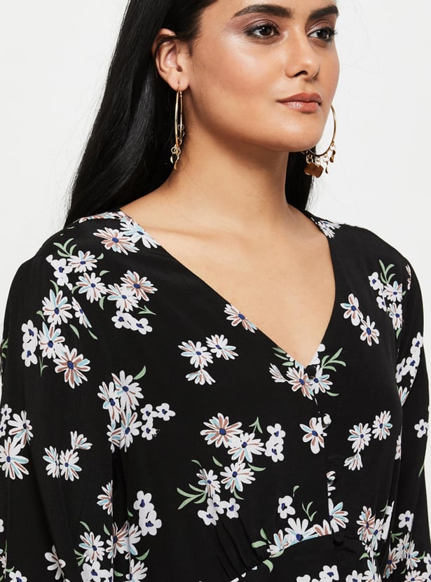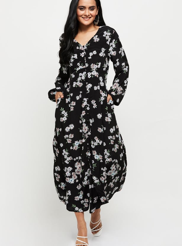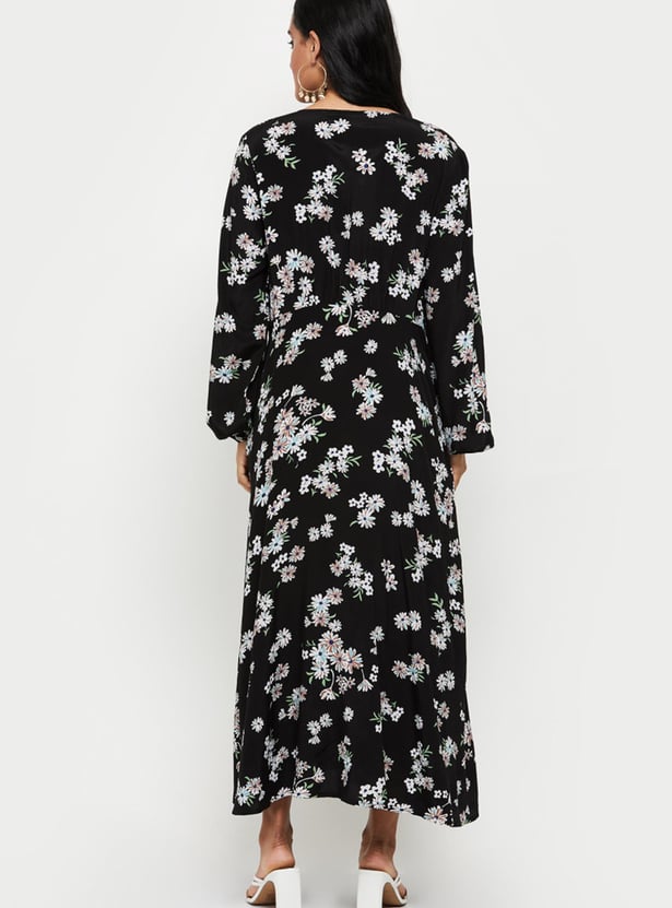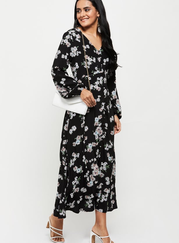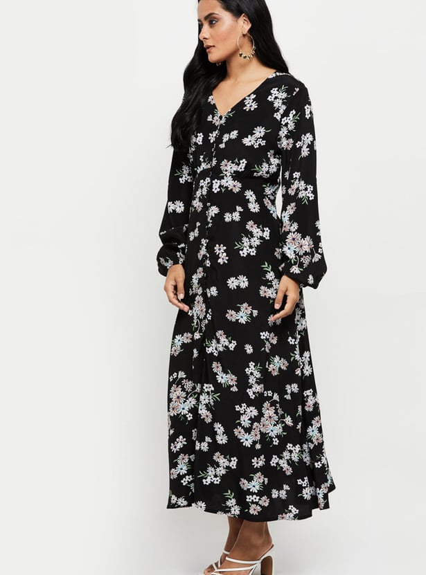 Elevate your casual look with this floral printed maxi dress designed with a v-neckline and full sleeves.