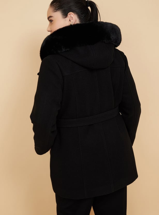 Women Fur Hood Longline Jacket