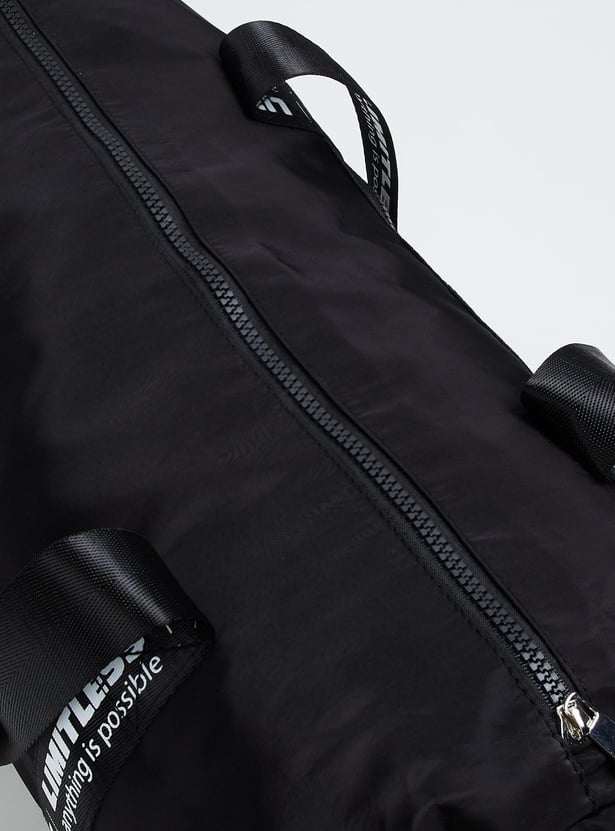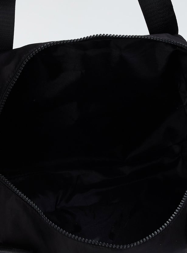 Keep your gear in one place and ready to go with this gym bag. It features a solid shell, printed flat handles, and a detachable strap. This bag is equipped with a spacious main compartment with a side entry to access your shoes.