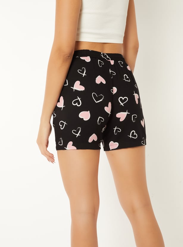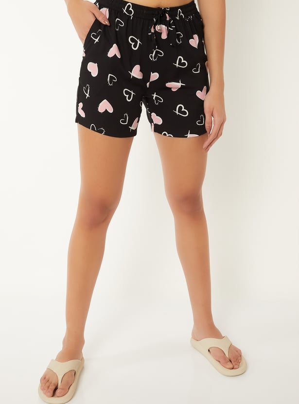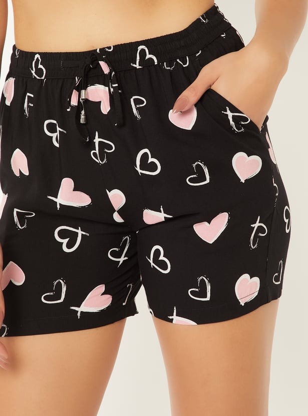 Stay comfy and cute in these heart print lounge shorts, designed with an elasticated waist and drawstring closure for the perfect fit. Finished with handy pockets, they’re ideal for relaxed days at home or casual outings.