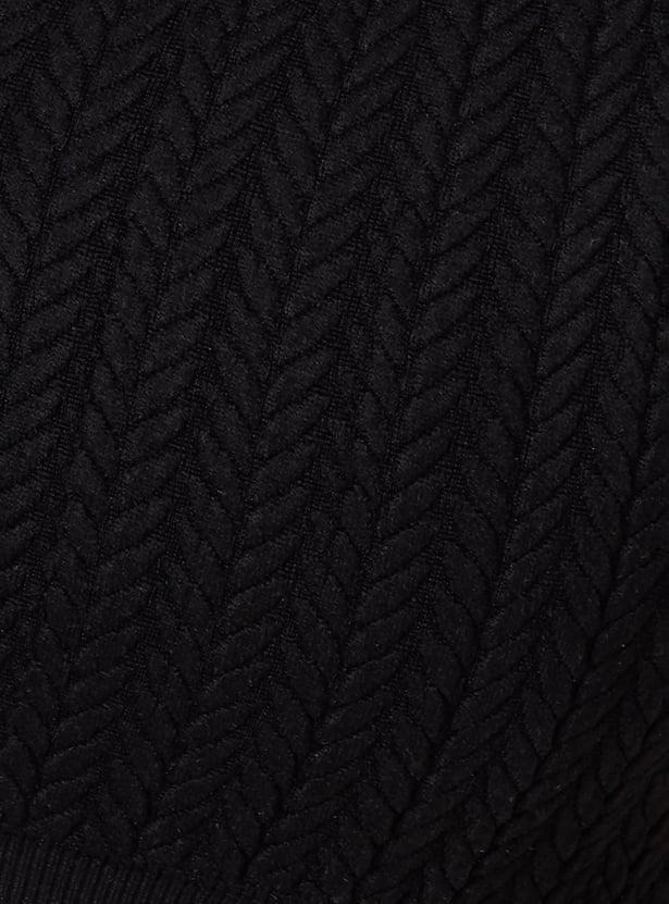 Support combines with comfort with this sports bra. The knit pattern lends a cosy look. It has a V-neck and elasticated hem.