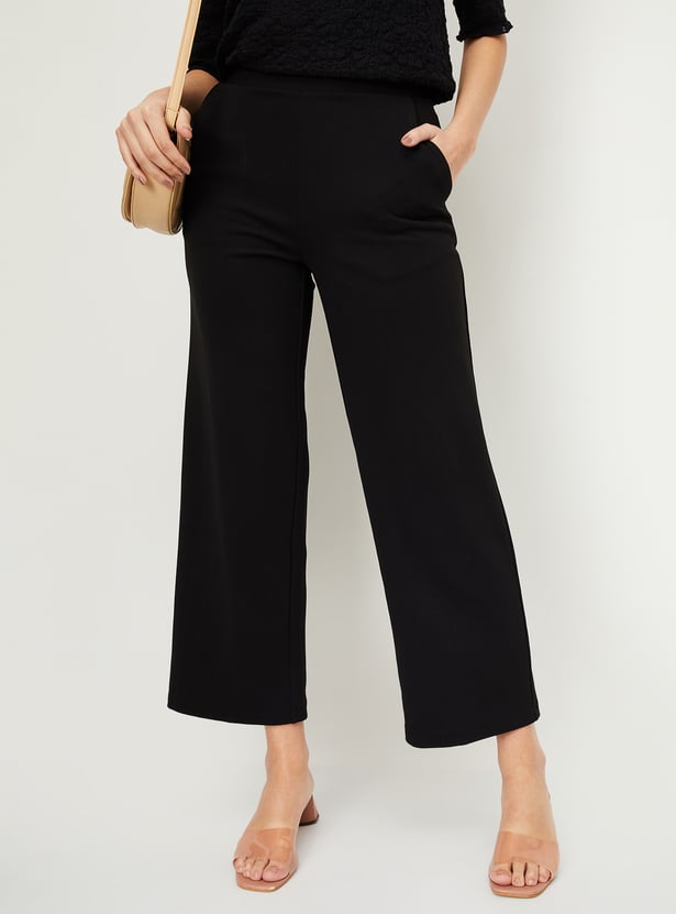Discover the simplicity and versatility of these pants. With a mid-rise waist, flared-leg cut, and functional side pockets, they offer a balanced silhouette and ease of wear. The elastic waistband ensures comfort while maintaining style.