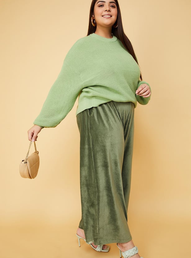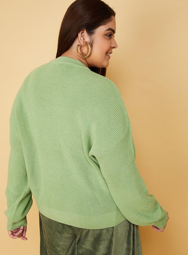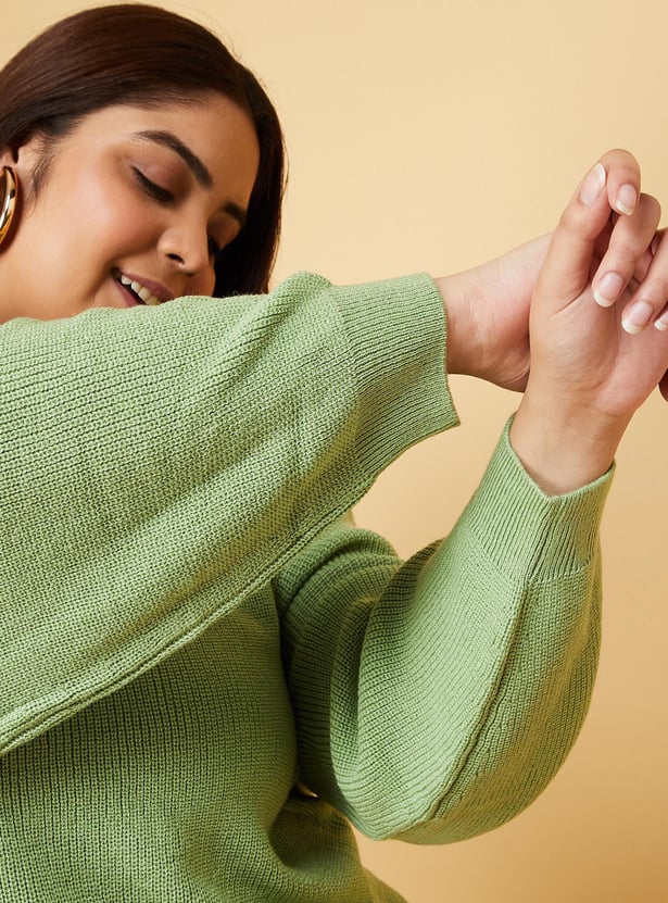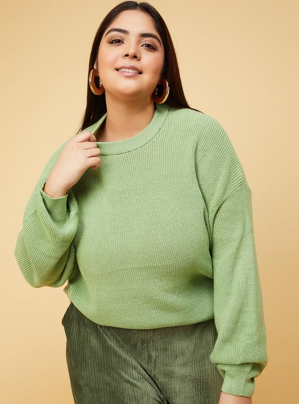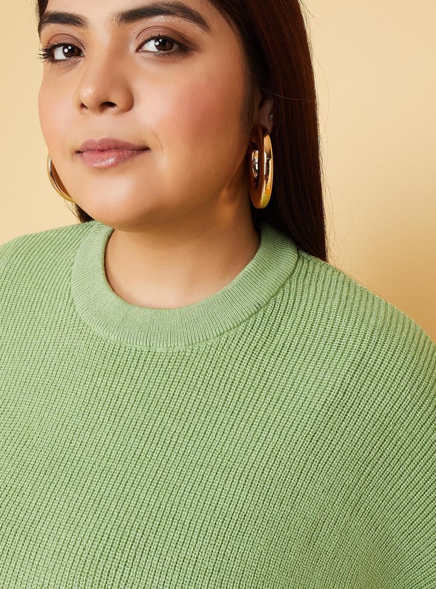 Cosy up for the season in this sweater featuring a knit pattern. It has a crew neck, drop shoulders, full sleeves, ribbed trim, and a crop profile. Style this sweater with jeans and sneakers to ace your style.