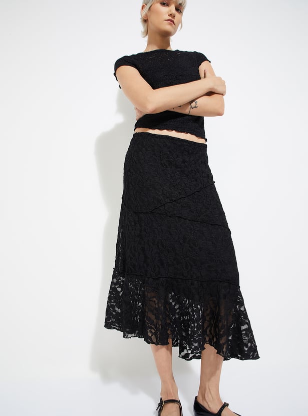 Women Lace A-line Midi Skirt