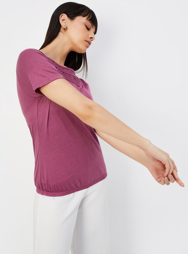 Add some style to your everyday wardrobe with this top. It features a classic round neck with a lace design, half sleeves and an elasticated hem.