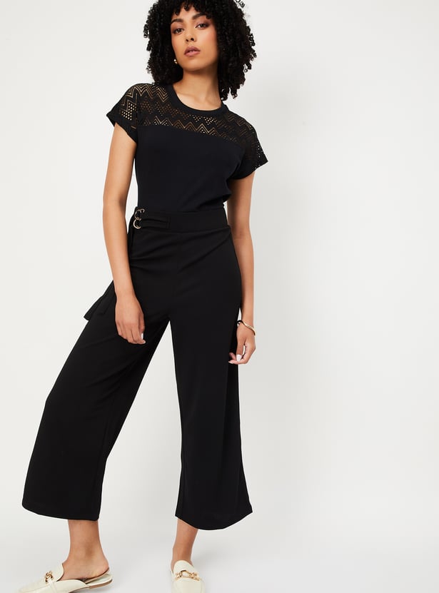 This lace inserts top is a perfect blend of elegance and charm, featuring a classic round neck and half sleeves. The intricate lace details add a feminine touch, elevating your everyday style with a delicate, stylish flair. Model Size :
