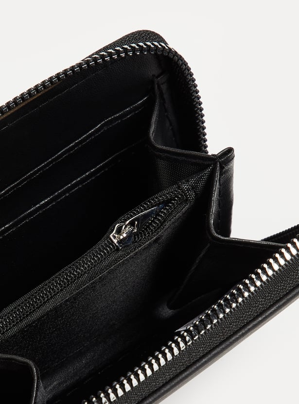 Carry your essentials in chic style with this versatile wallet. Boasting a stylish all-over stitch print, it features a secure zip closure, two main compartments, an internal zip pocket, and multiple card slots for ample storage.