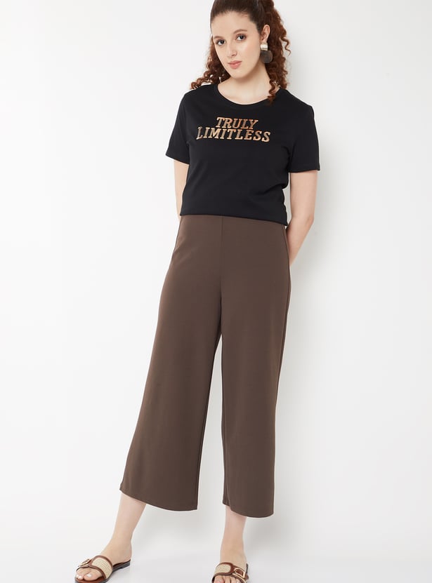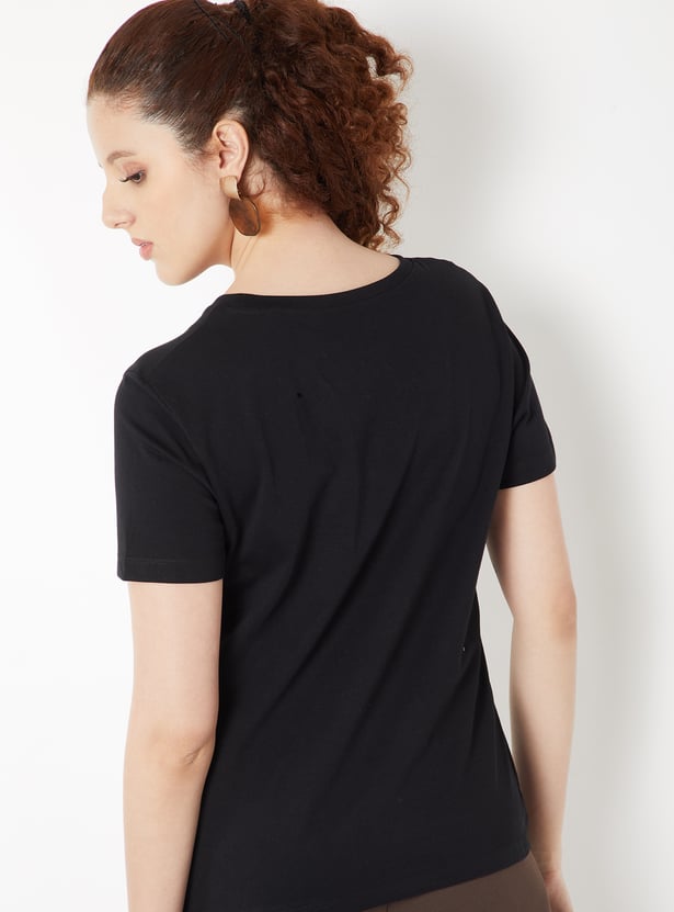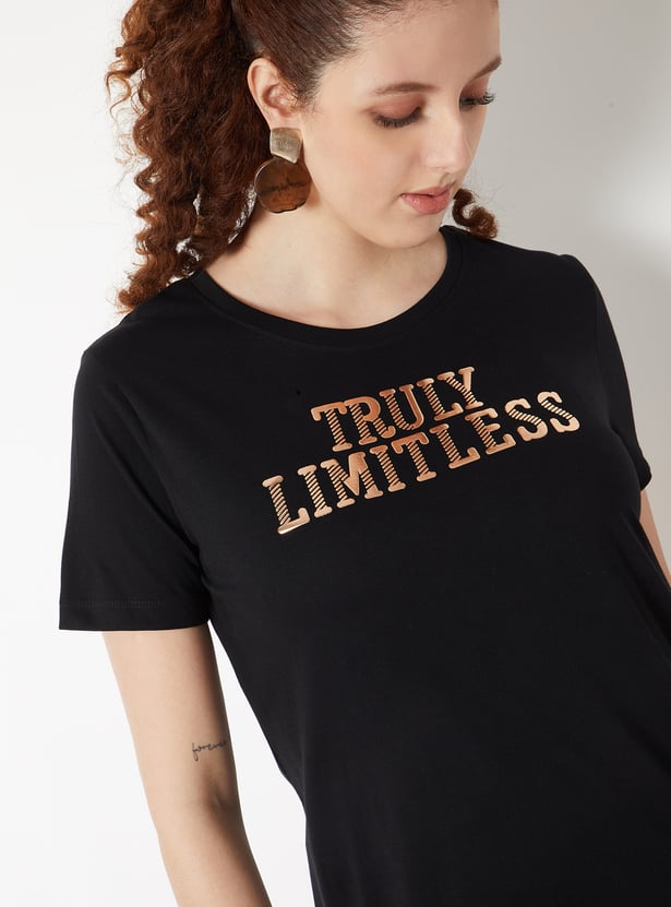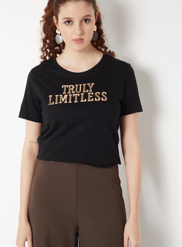 Refresh your basics with this T-shirt. Featuring a classic round neck and half sleeves, it offers everyday comfort with timeless style. The metallic print adds a versatile touch, making them perfect for casual wear or layering. Model Size :