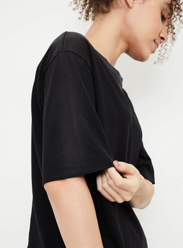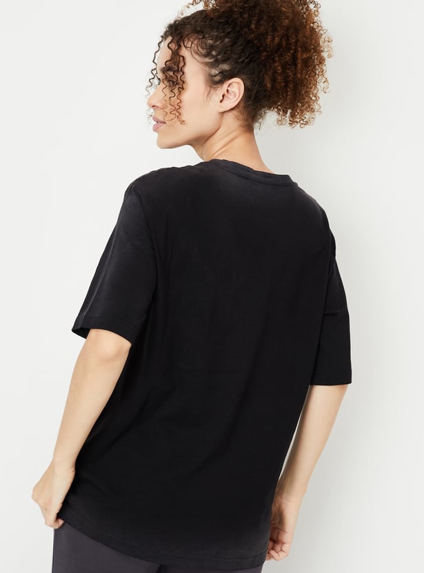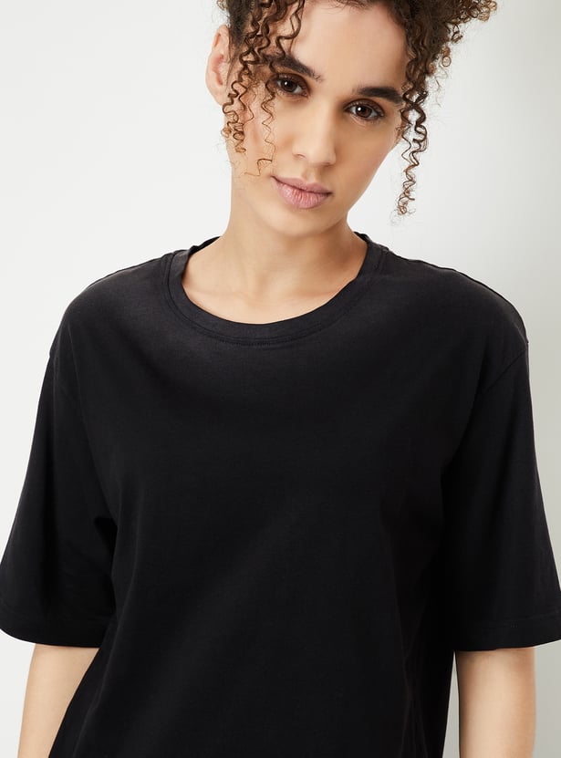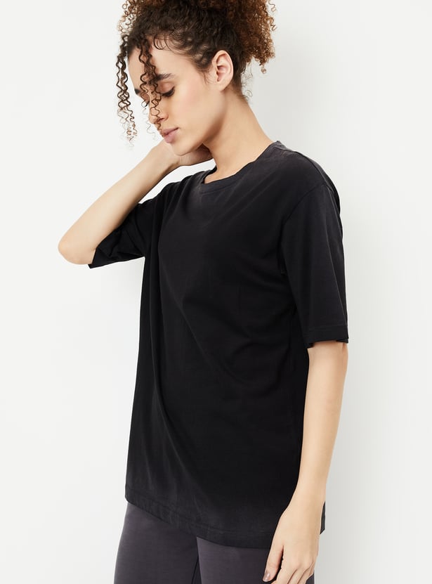 Comfort meets cool with this T-shirt. The washed finish gives it a laid-back, worn-in vibe, while the oversized profile lends roomy comfort. The round neck and half sleeves give a classic touch.