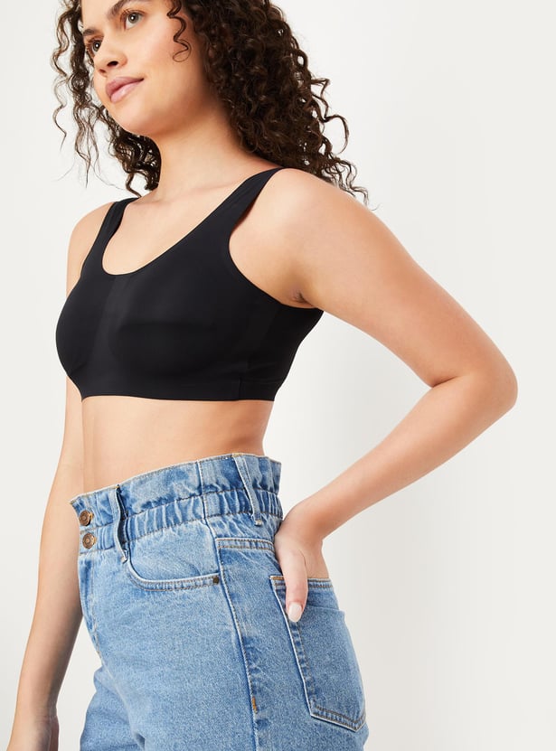 Power through the day in style in this bra. It is rendered in a solid tone with a scoop neck. The padded cups provide enhanced support and non-wired design ensures all-day comfort.