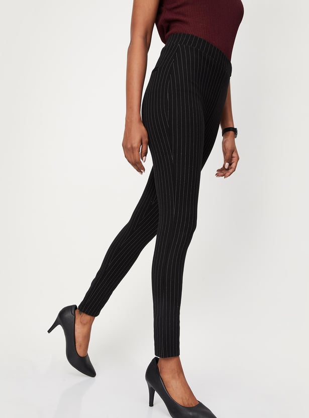 Women Pinstripe Knit Treggings