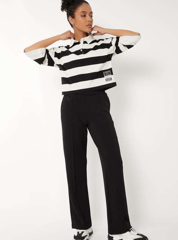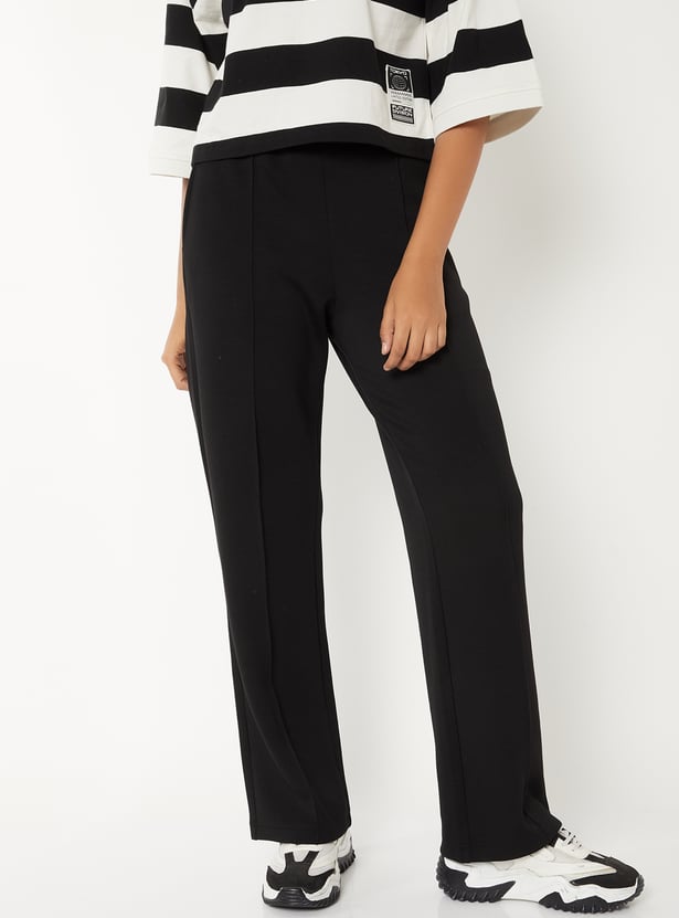 Women Pintuck Wide-Leg Track Pants