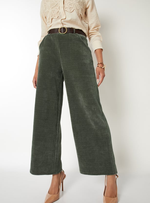Women Pleated Wide Leg Corduroy Trousers