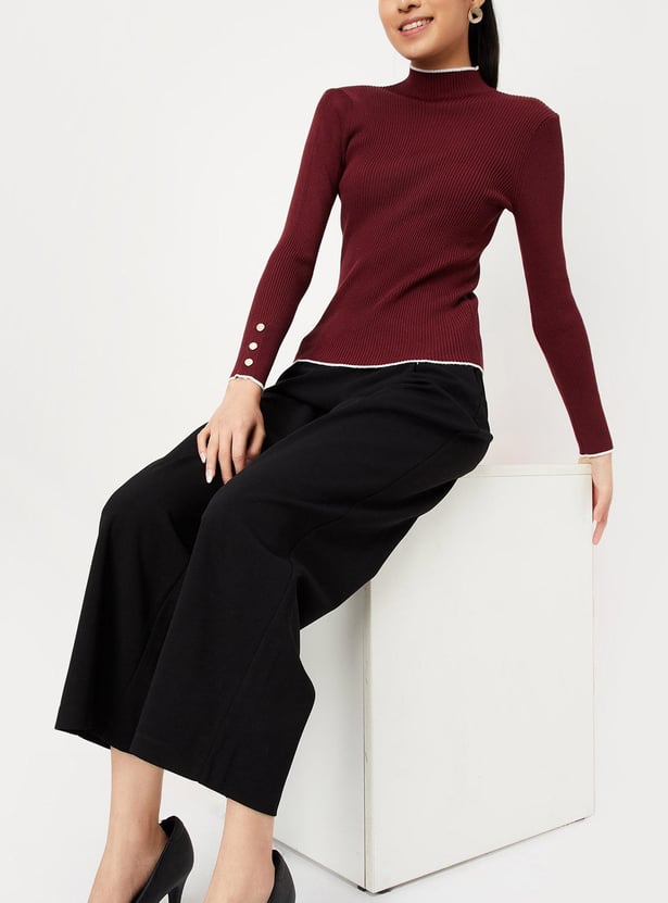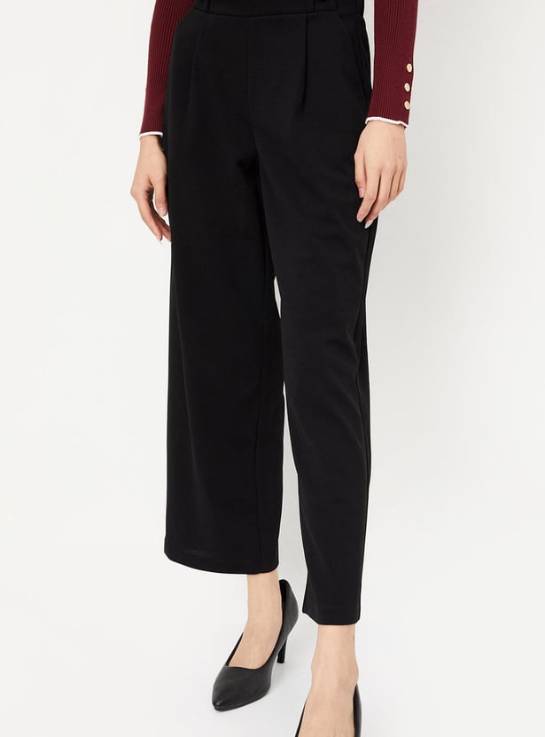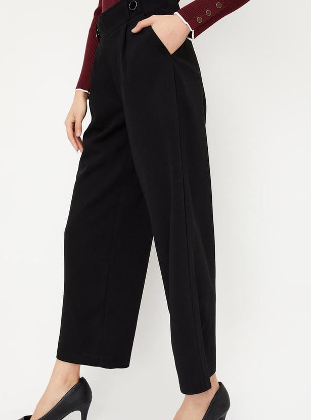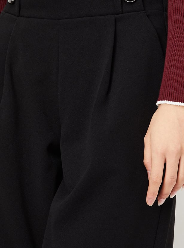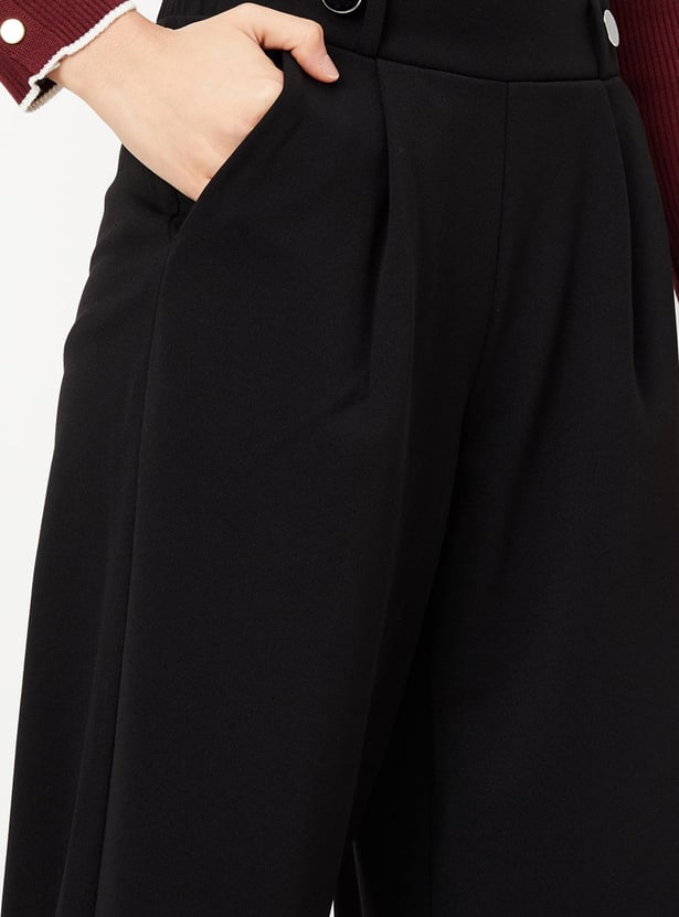 Exude an air of sophistication in this pair of trousers tailored in a wide-leg profile. It features a partially elasticated waist with belt loops and button accents, a pleated front, cross pockets, and a full-length profile.