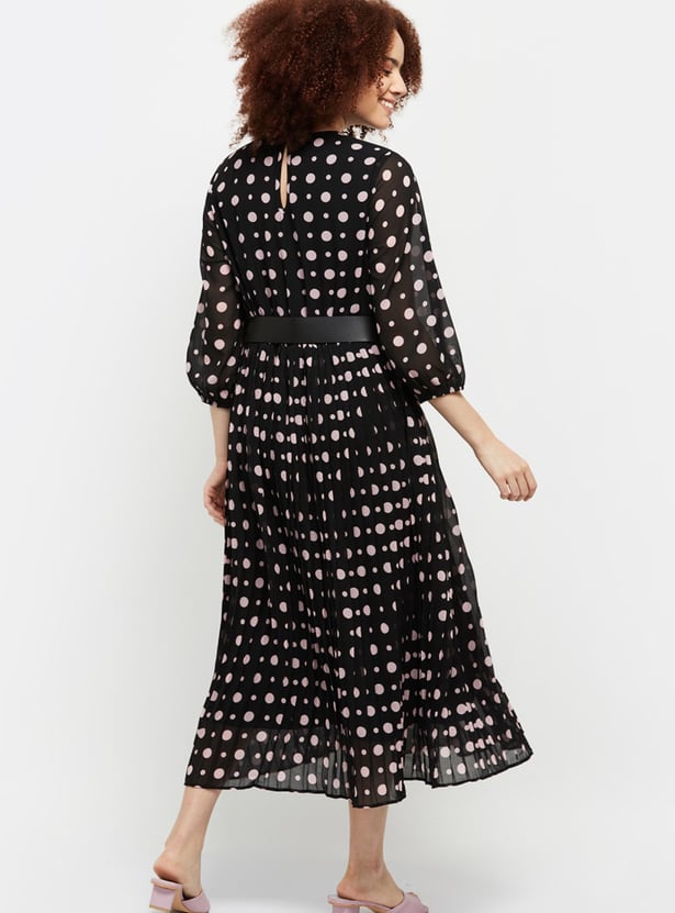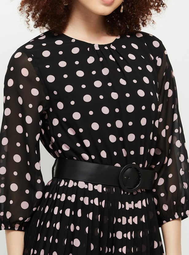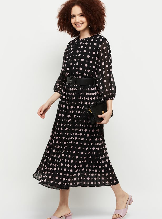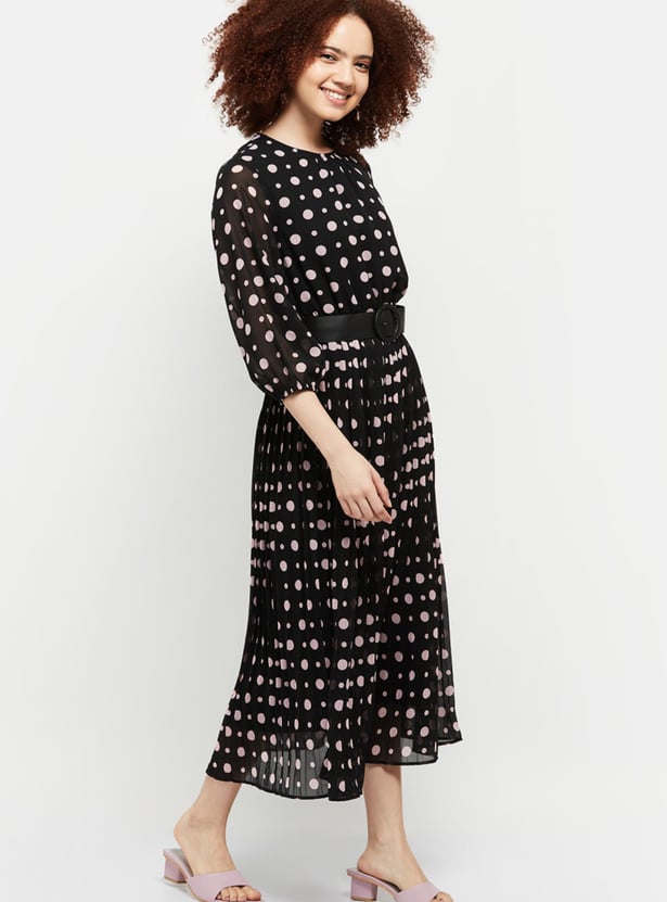 Women Polka-Dot Printed Three-Quarter Sleeves Midi Dress