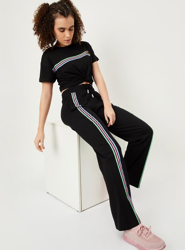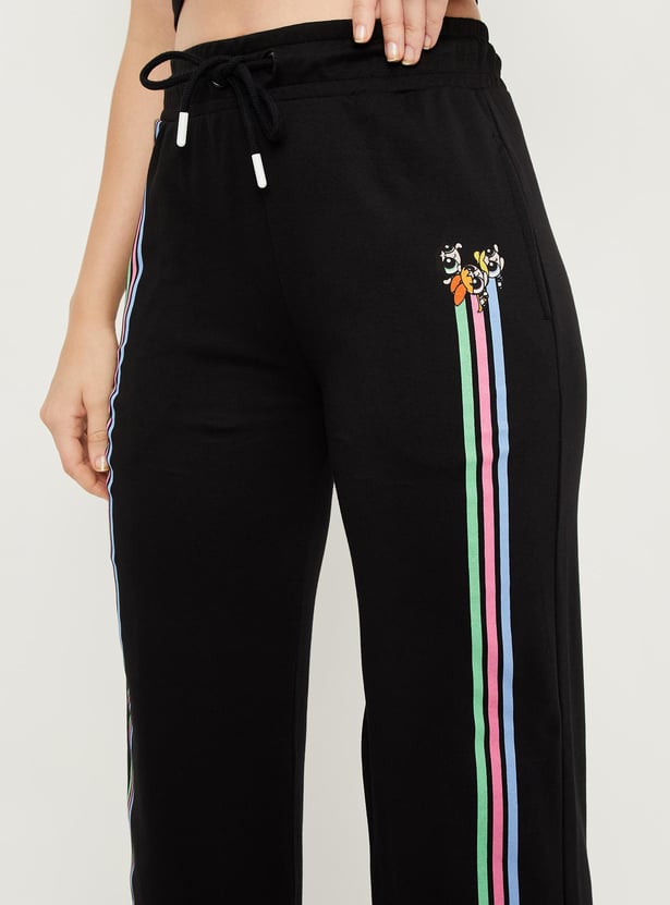 Stride in style with these striped track pants offering a perfect blend of comfort and trendiness. They have side pockets and a drawstring closure. The dynamic stripes and powerpuff girl prints add a sporty yet cute touch, making them an ideal choice for both casual outings and active pursuits.