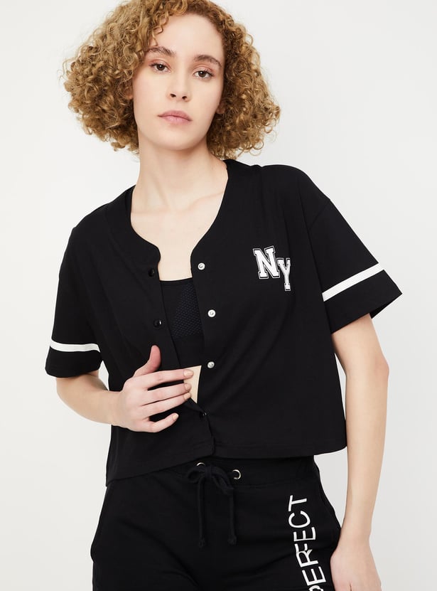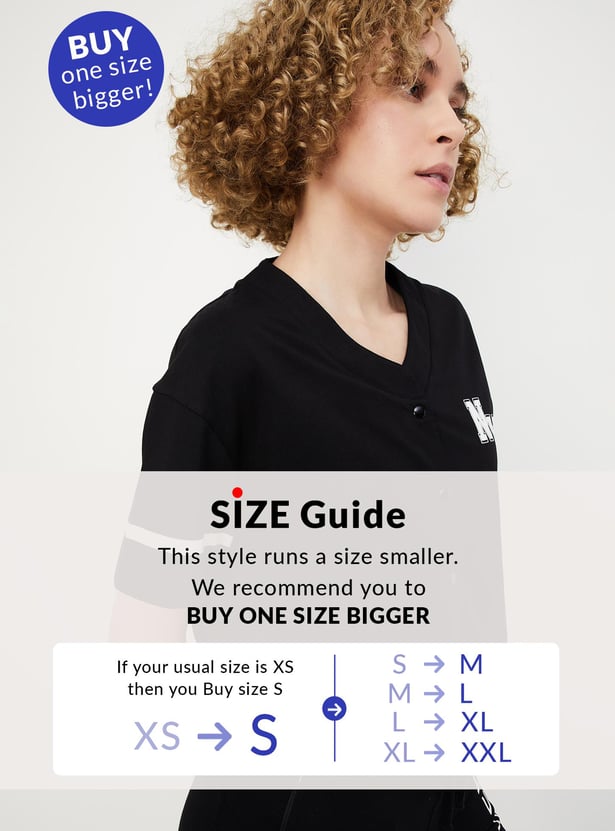 Gear up for game day with this printed baseball shirt. Designed for style and performance, it features a V-neck, button placket, and breathable half sleeves. Elevate your athletic look with this stylish addition to your sports wardrobe.