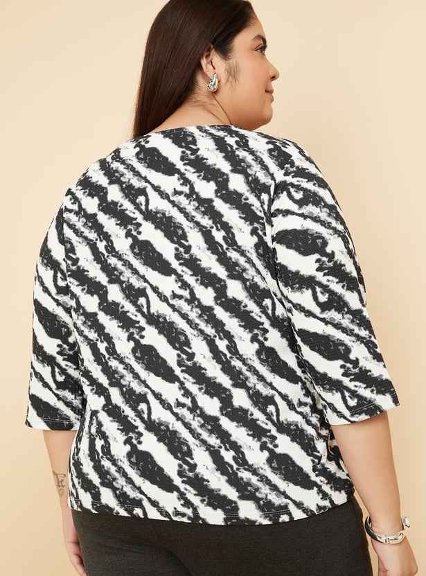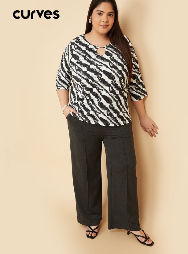 Elevate your casual wardrobe with this printed blouse, featuring a cut-out detail at the neck and 3/4th sleeves for a stylish yet comfortable fit. Model Size :