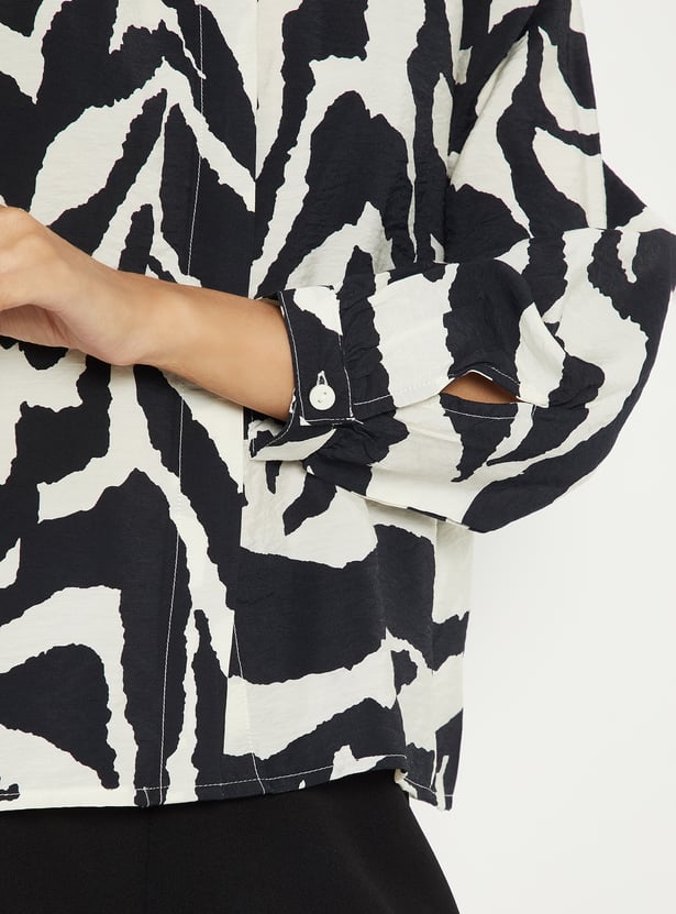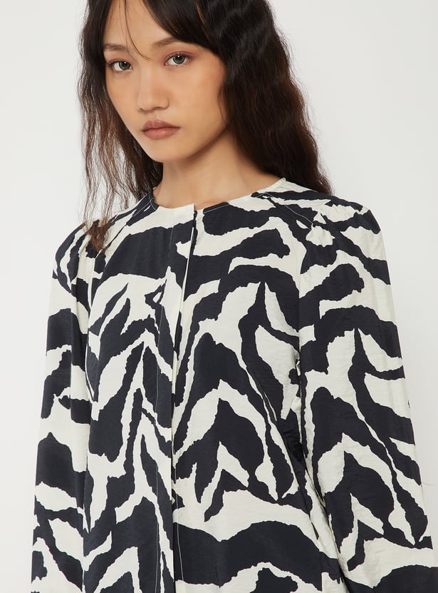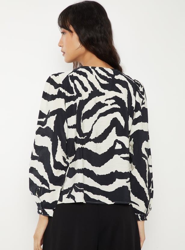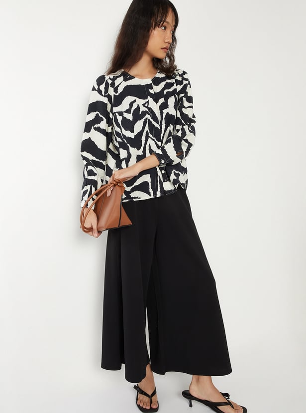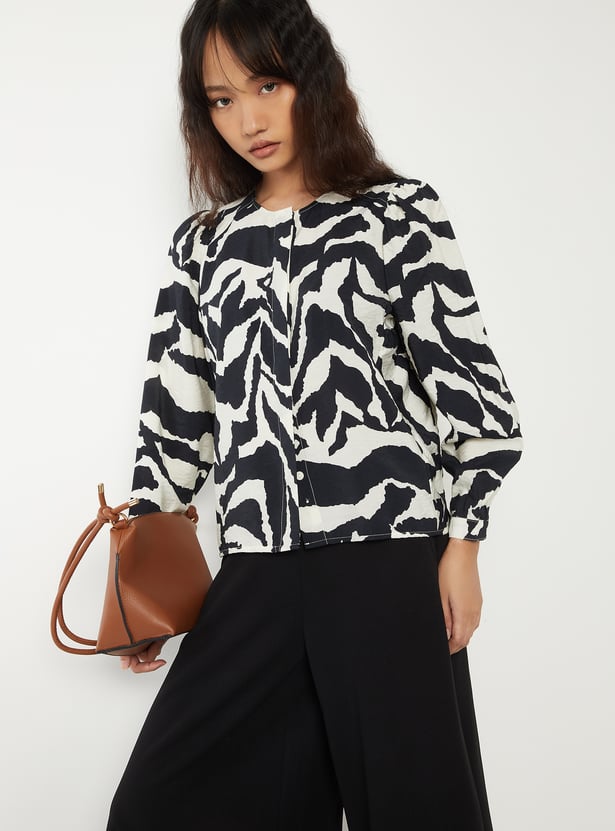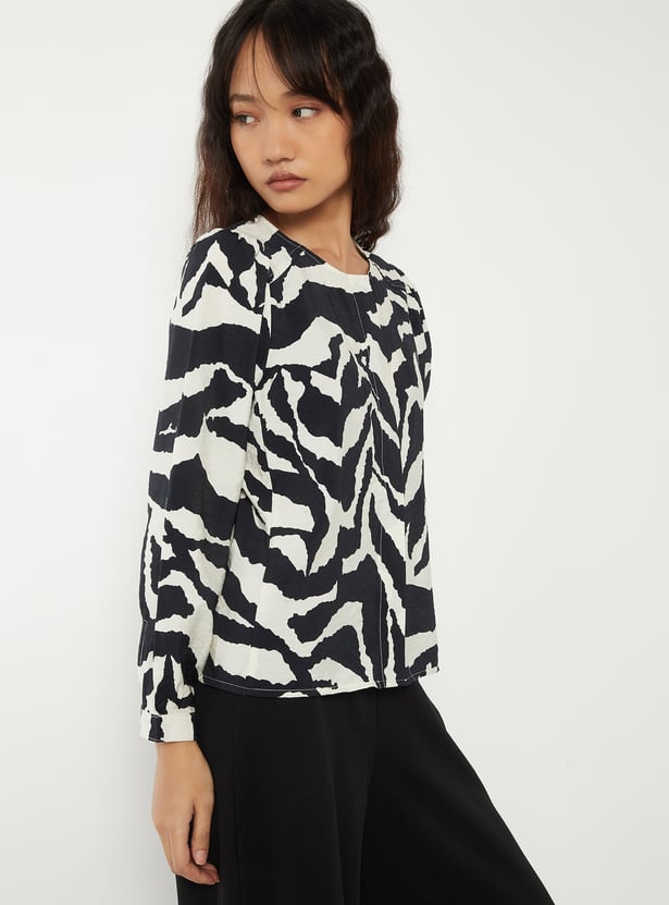 This blouse features a charming design for a stylish appeal. It comes with a round neckline and full sleeves, adding to its elegance. The design includes carefully crafted details for a polished look. Ideal for versatile styling.