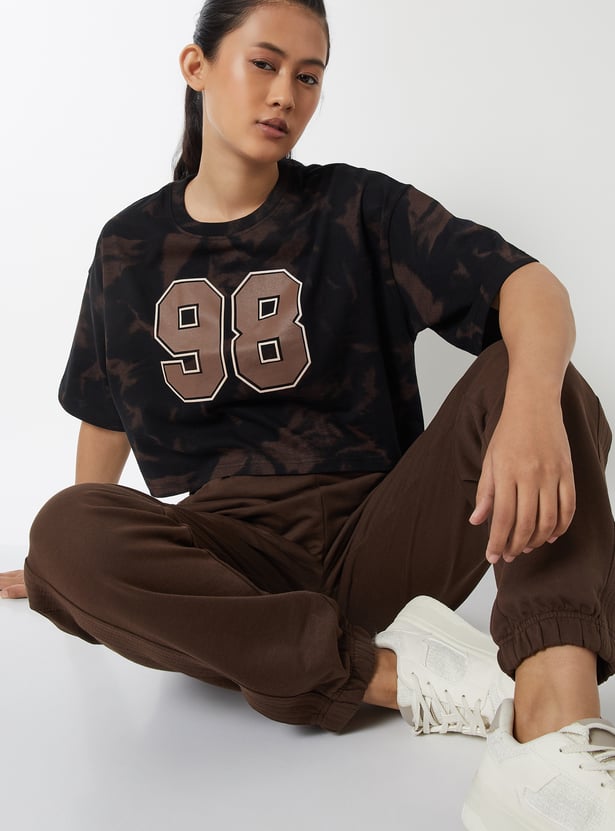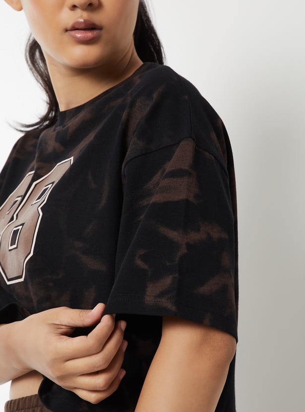 Women Printed Boxy Fit Sports Crop T-shirt