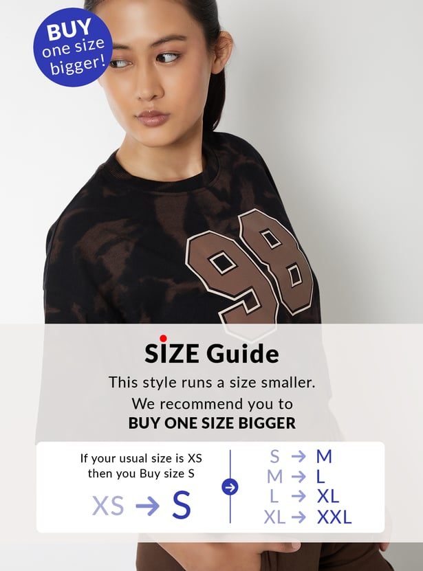 Make a statement with this printed boxy fit sports crop T-shirt, featuring a round neck and half sleeves for a trendy, active vibe. Perfect for adding a pop of fun to your casual outfits. Model Size :